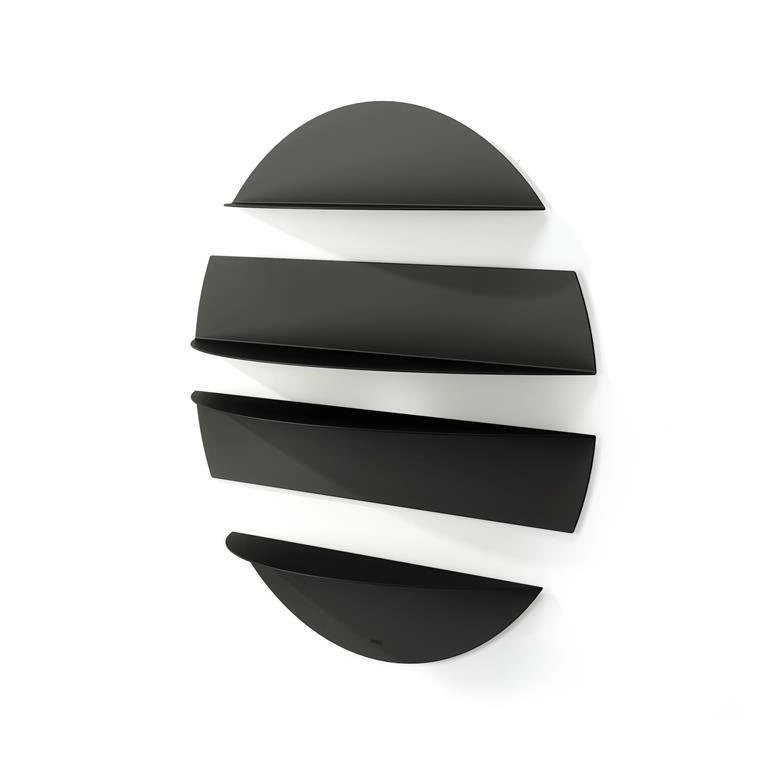 Nástěnná police Solis od značky Umbra je moderní, kulatá kovová police o působivé šířce 76 cm, ideální pro vystavení dekorací v obývacím pokoji, ložnici nebo předsíni. Černý matný povrch a geometrický tvar podtrhují industriální styl interiéru, zatímco čtyři prostorné úrovně umožňují pohodlné ukládání a prezentaci vašich oblíbených předmětů. Díky pevné závěsné konstrukci se police Solis stává nejen funkčním kusem nábytku, ale také výraznou nástěnnou dekorací.