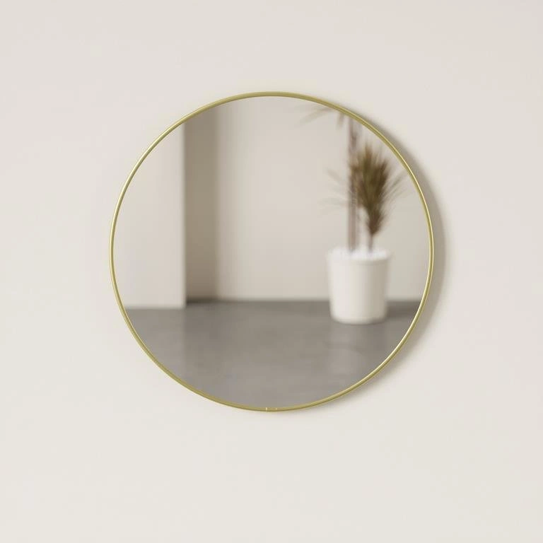 Kulaté zrcadlo Hubba 61 cm od značky Umbra je jedinečný doplněk, který dodá vašemu interiéru eleganci a moderní styl. Vyrobené z pevného kovu se zlatým rámem okouzlí svou jemnou formou a univerzálním využitím. Průměr 61 cm zaručuje, že zrcadlo skvěle poslouží jako zrcadlo do předsíně, obývacího pokoje nebo ložnice, kde nabídne nejen praktický odraz, ale také výraznou nástěnnou dekoraci.