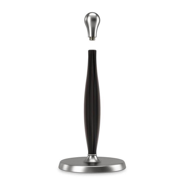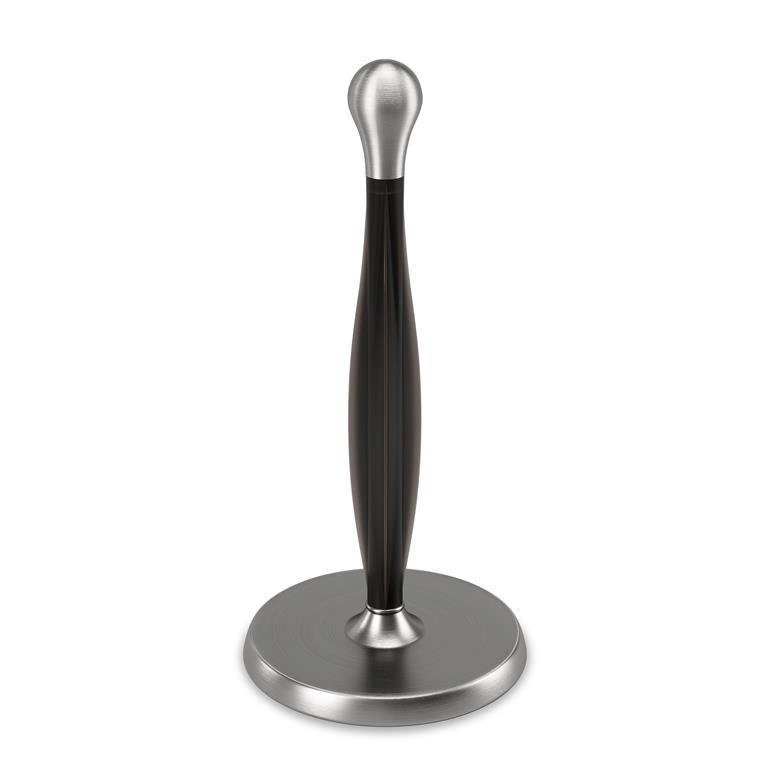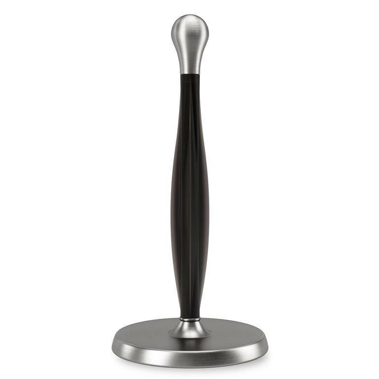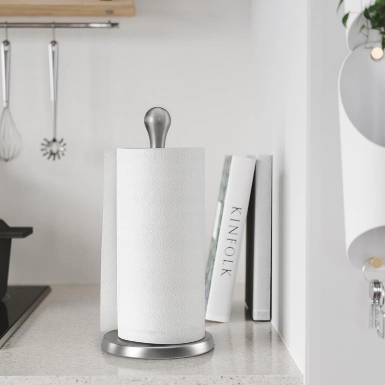 Stojan na papírové utěrky je nezbytnou součástí každé kuchyně. Tug je jednoduchá kovová konstrukce v tmavé barvě. Skládá se z kovové tyče zajímavého tvaru umístěné na kruhové základně. Díky elegantnímu chromovanému povrchu základny a rukojeti, která přesahuje nad papír, vypadá stojan velmi moderně. Její velikost odpovídá standardtéto velikosti papíru a je navržena tak, aby se nepřevrátila