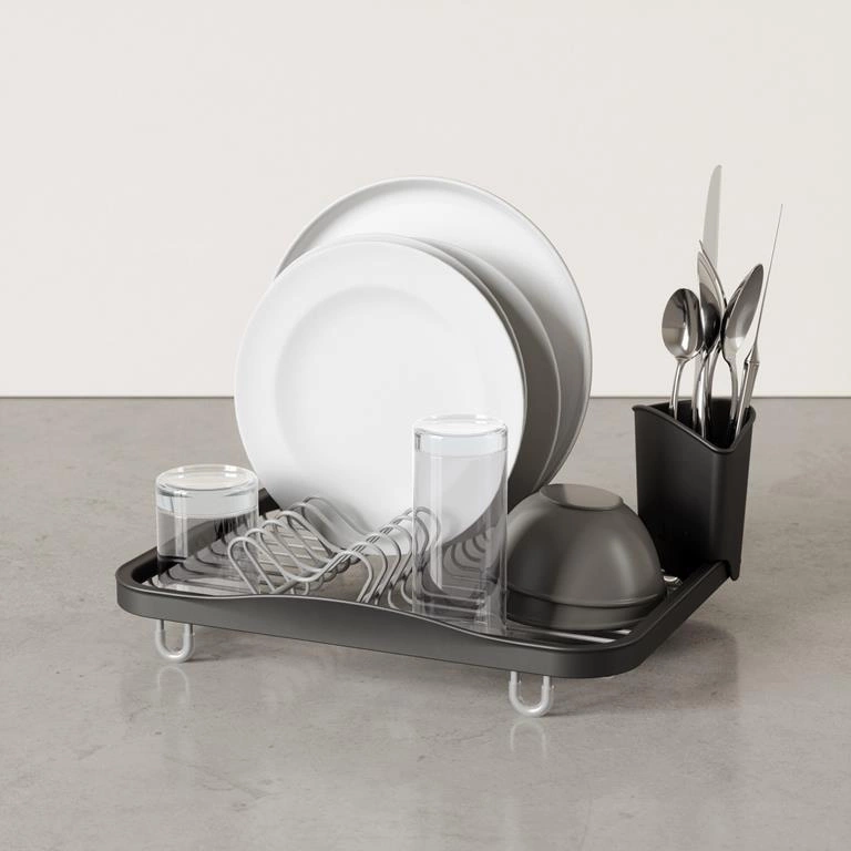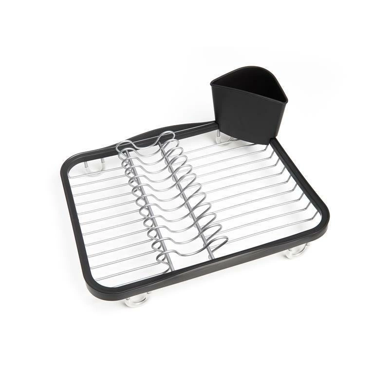 Začaly vám vadit velké nevzhledné sušáky? Hledáte elegantní a zároveň pohodlný způsob sušení nádobí? Sinkin je stojan na sušení nádobí ve dřezu. Jeho minimalistický tvar vám umožní umístit jej na dno kuchyňského dřezu a osušit nádobí od přebytečné vody, která odtéká přímo do odtoku. Tímto způsobem se vyhnete vylévání vody, která zůstává na sušáku, což také zlepšuje hygienu v kuchyni. Sušák na nádobí je vyroben z potaženého kovového drátu a odolného polypropylenu. Sinkin má také protiskluzové gumové nožičky, které nepoškrábou dřez ani desku. Stojan o rozměrech 36 × 28 × 14 cm se vejde do většiny kuchyňských dřezů standardow a nabízí nový způsob sušení nádobí