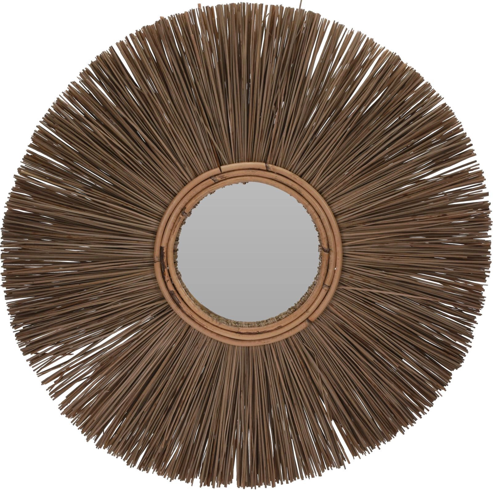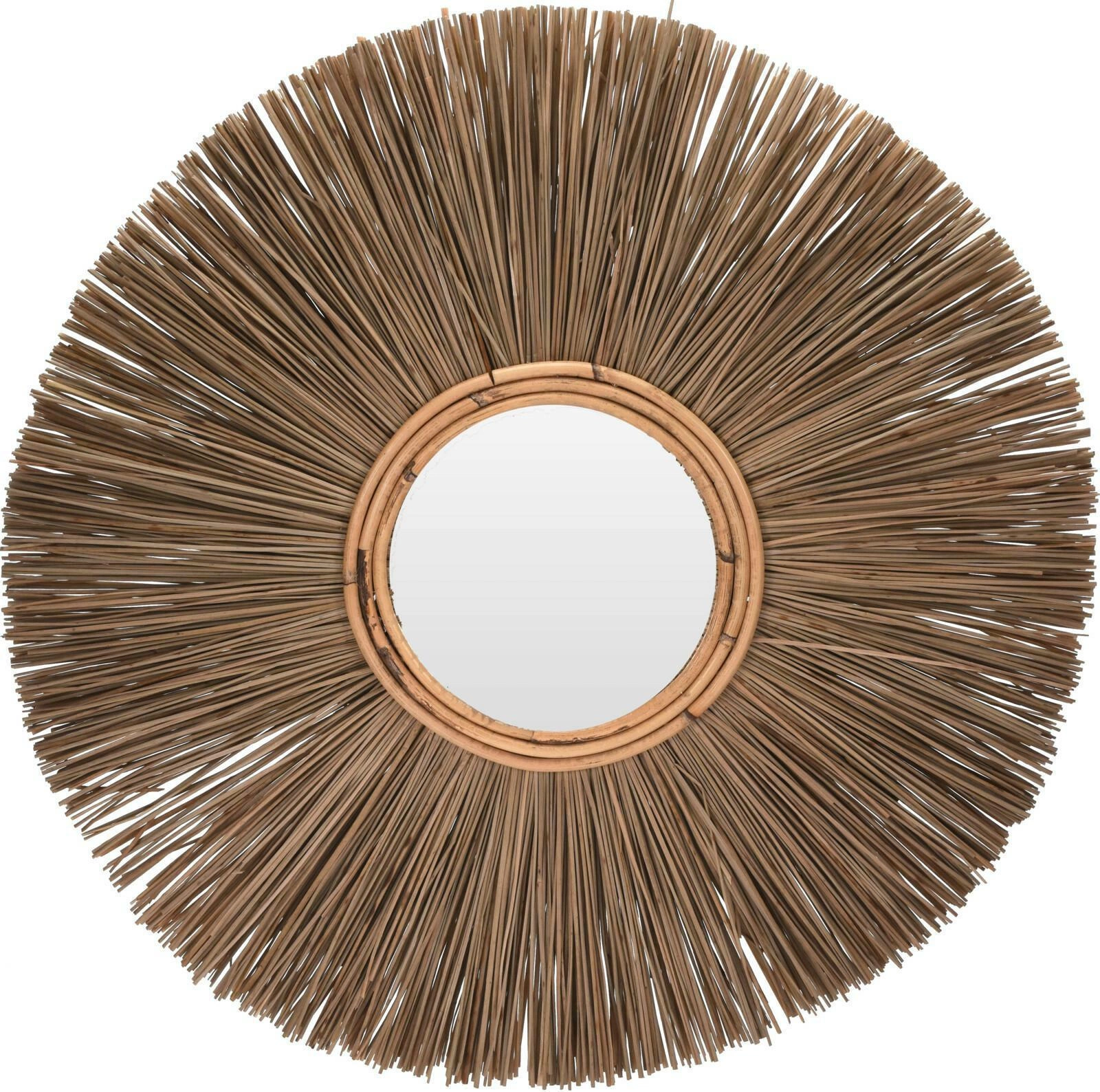 Kulaté zrcadlo boho Kubul 66 cm od značky Intesi je výjimečná nástěnná dekorace, která propojuje přírodní materiály s originálním designem. Ručně vyráběný rám z trávy dodává zrcadlu autentický charakter a skvěle zapadne jak do boho interiérů, tak do moderních prostor. Průměr 66 cm zajišťuje, že zrcadlo je ideální volbou do předsíně, obývacího pokoje nebo ložnice – nabídne praktické využití a zároveň se stane výrazným vizuálním prvkem.