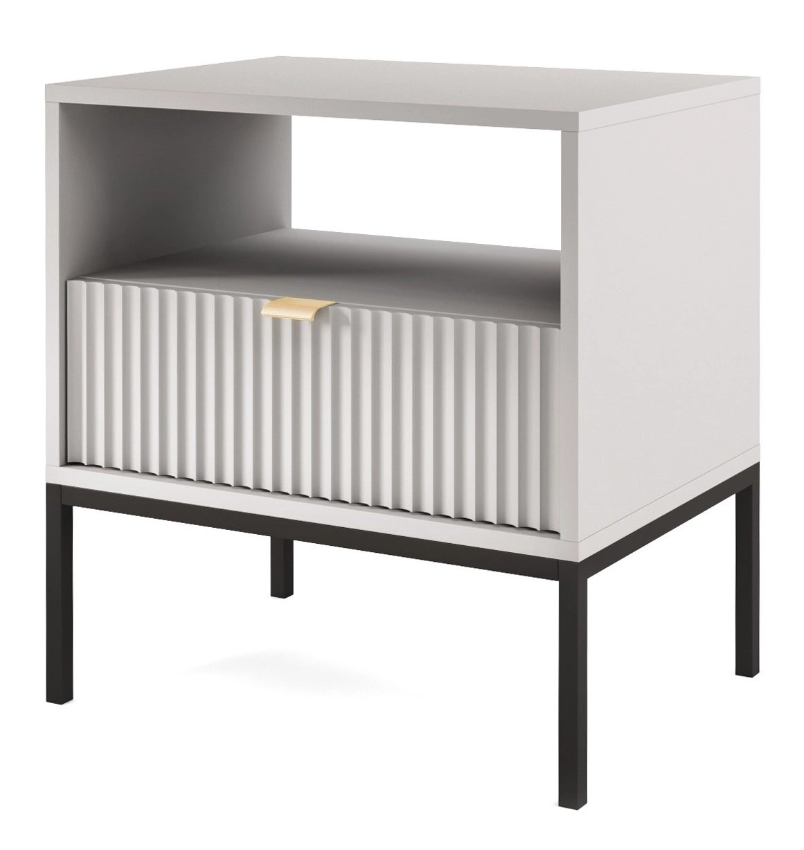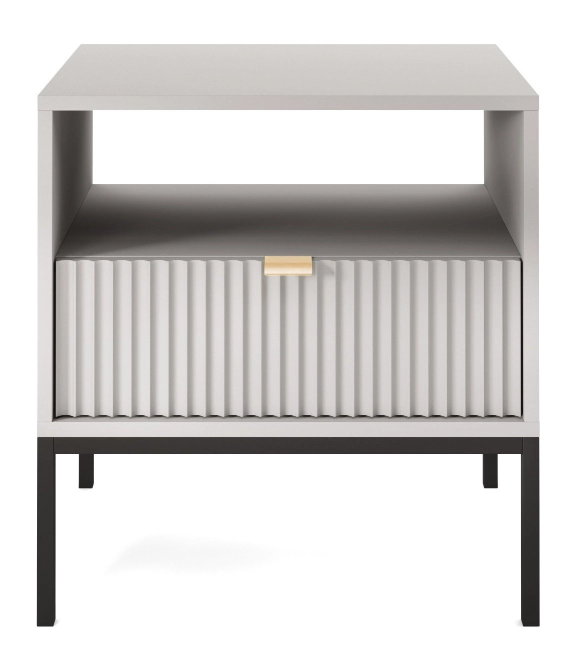 Šedý noční stolek s drážkováním 54 cm se zásuvkou glamour Intesi Delicious na vysokých nohách