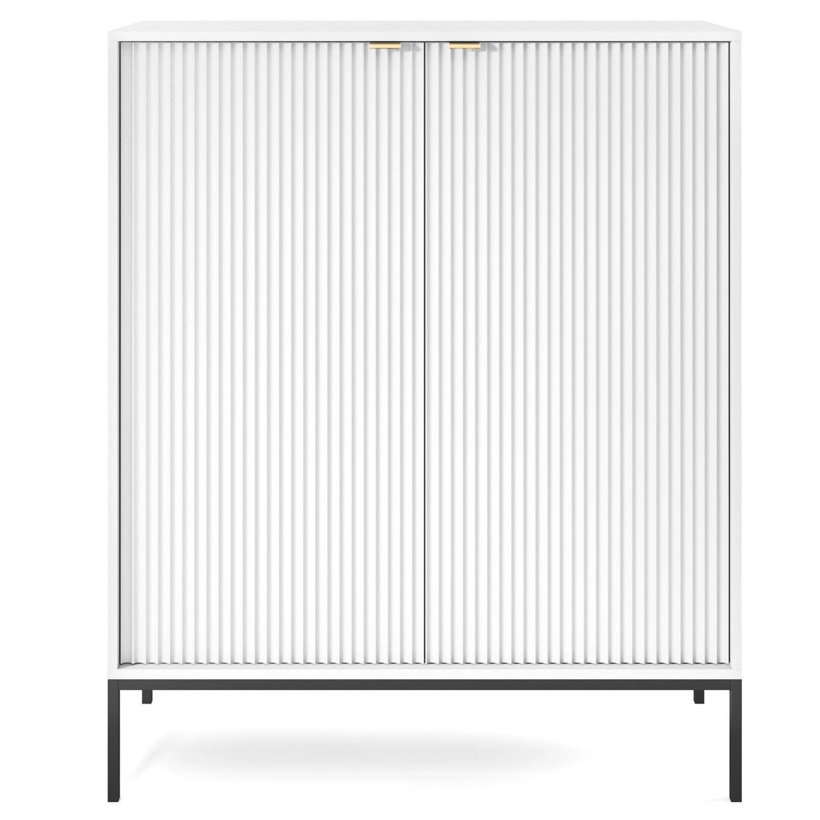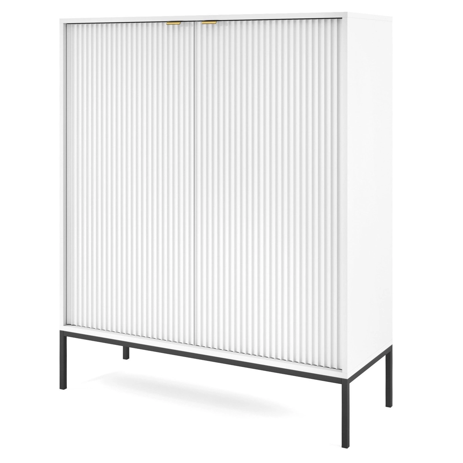 Vysoká bílá komoda s drážkováním na nožkách 104 cm moderní do obýváku Intesi