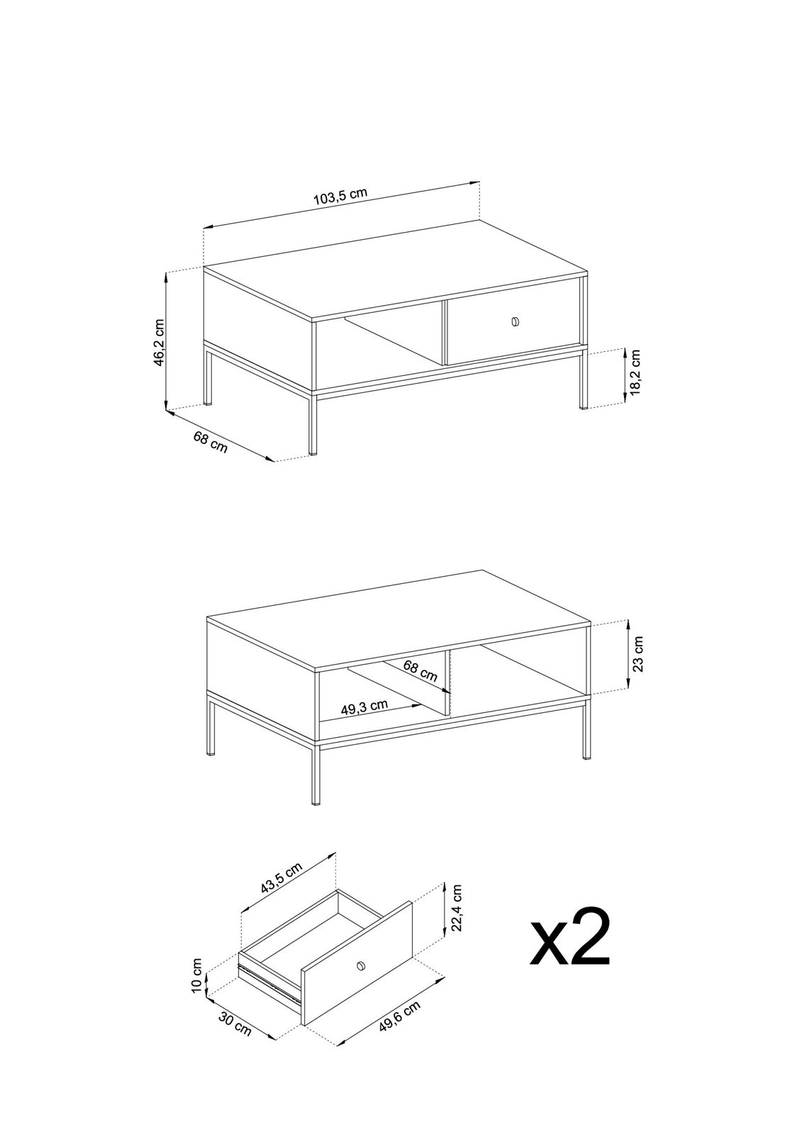 S konferenčním stolkem Evora získáte nejen stylový nábytek, ale také praktická řešení pro každý den. Je to moderní konferenční stolek se zásuvkou, který vám pomůže zorganizovat prostor a zároveň se stane ozdobou vašeho interiéru.- Obdélníková deska o šířce 104 cm – dostatek místa na šálky, občerstvení i dekorace, ideální centrum setkávání v obývacím pokoji.