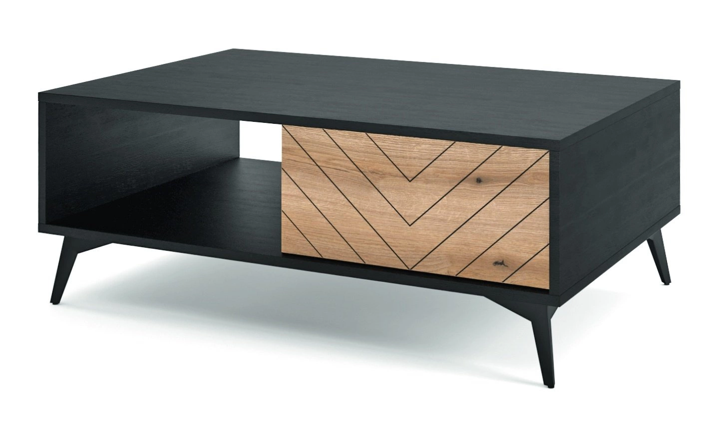 Konferenční stolek Fargo značky Intesi je ideální volbou pro ty, kdo mají rádi industriální minimalismus a nadčasovou eleganci. Obdélníková deska v dekoru dubu věrně imituje přírodní dřevo a ozdobné čelo zásuvky ve vzoru rybí kosti dodává stolku osobitý charakter a originalitu. Stabilní kovová podnož v matné černé barvě perfektně zapadá do loftových, industriálních i moderních interiérů. Takto navržený stolek skvěle zapadne jak do prostorného obývacího pokoje, tak do menšího bytu, kde je důležitý každý centimetr funkčního prostoru.Praktičnost a pohodlí každý den