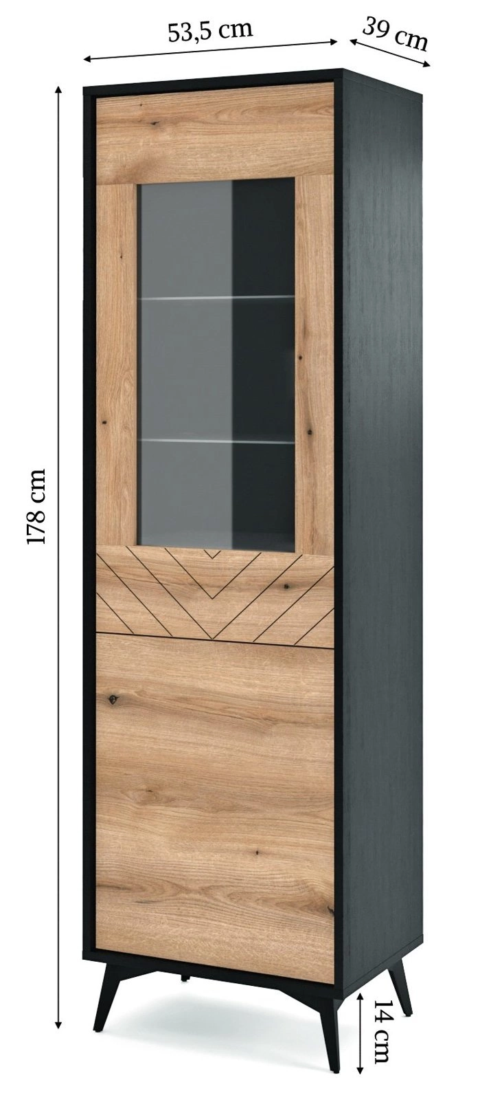 - Kompaktní rozměry (178×54×39 cm) – snadno vitrínu umístíte do různých místností bez omezení kapacity