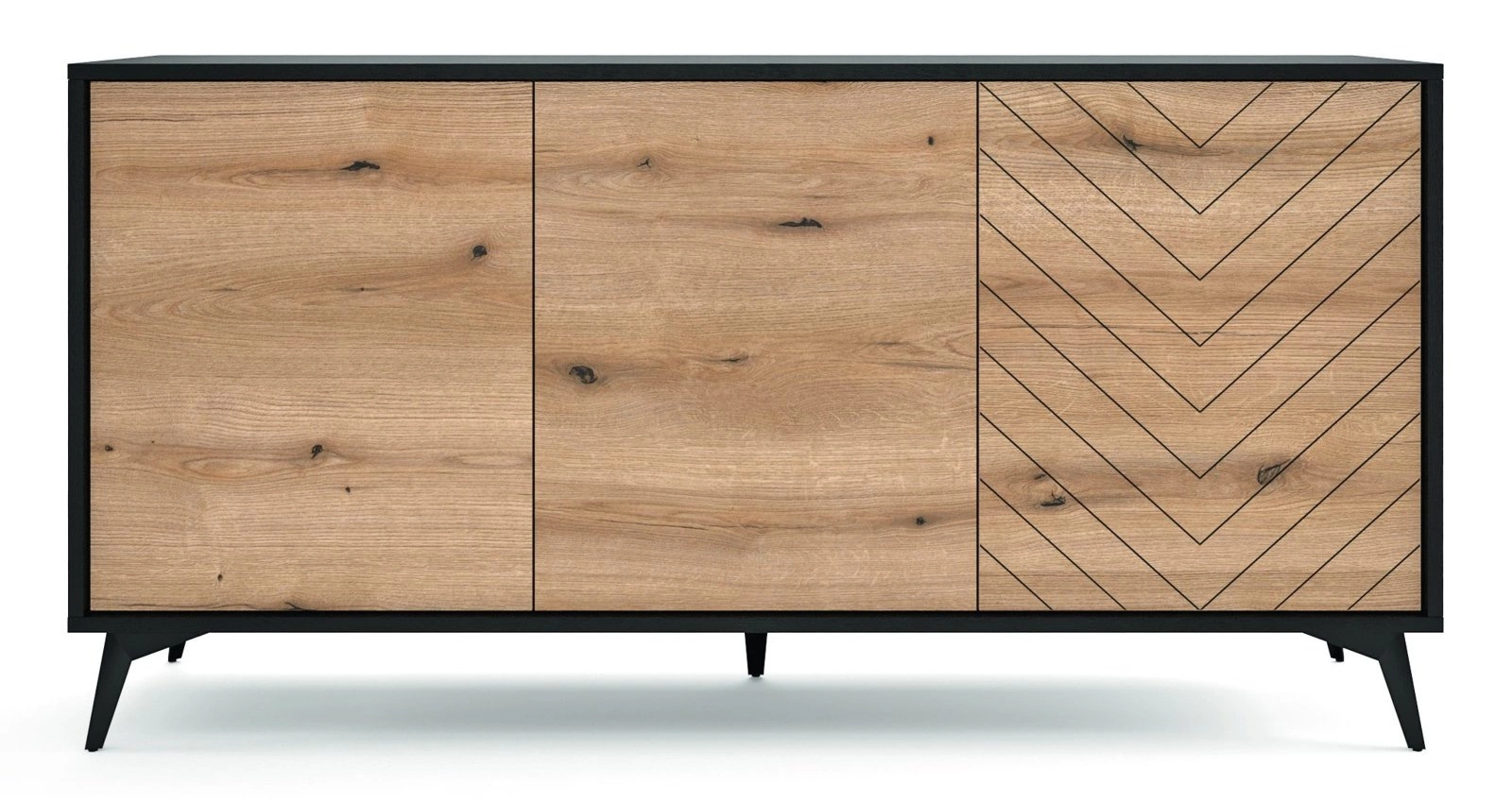 Velká komoda Fargo ve tvaru rybí kosti od společnosti Intesi je originální a praktický kus nábytku, který je senzační pro uspořádání věcí všech velikostí. Slušivá a poměrně velká komoda v hnědé a černé barvě je vyrobena z kovu a nábytkové desky. Díky tomu, že je komoda vyrobena z kovu a nábytkové desky, je univerzální, odolná a vizuálně zpestřuje místnost, ale to nejsou všechny výhody těchto surovin. Komoda nemá typické úchyty a lze ji otevřít pomocí praktické technologie push-to-open. Jemným zatlačením na přední stranu se nábytek otevře.