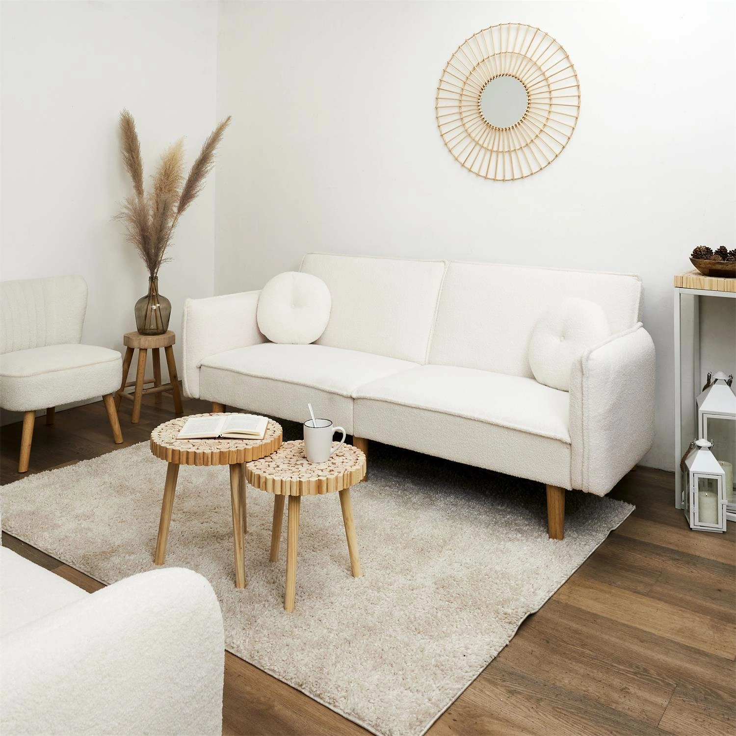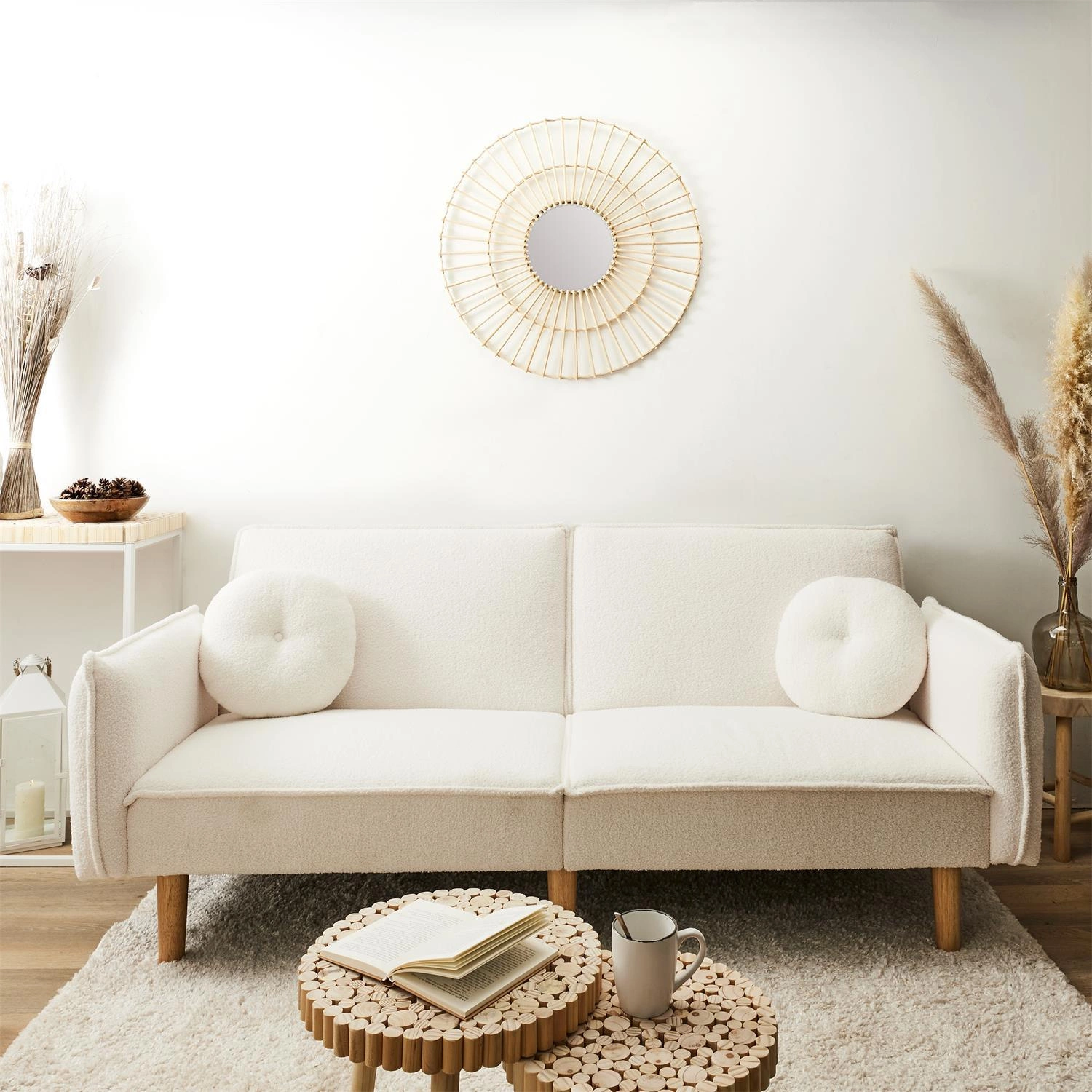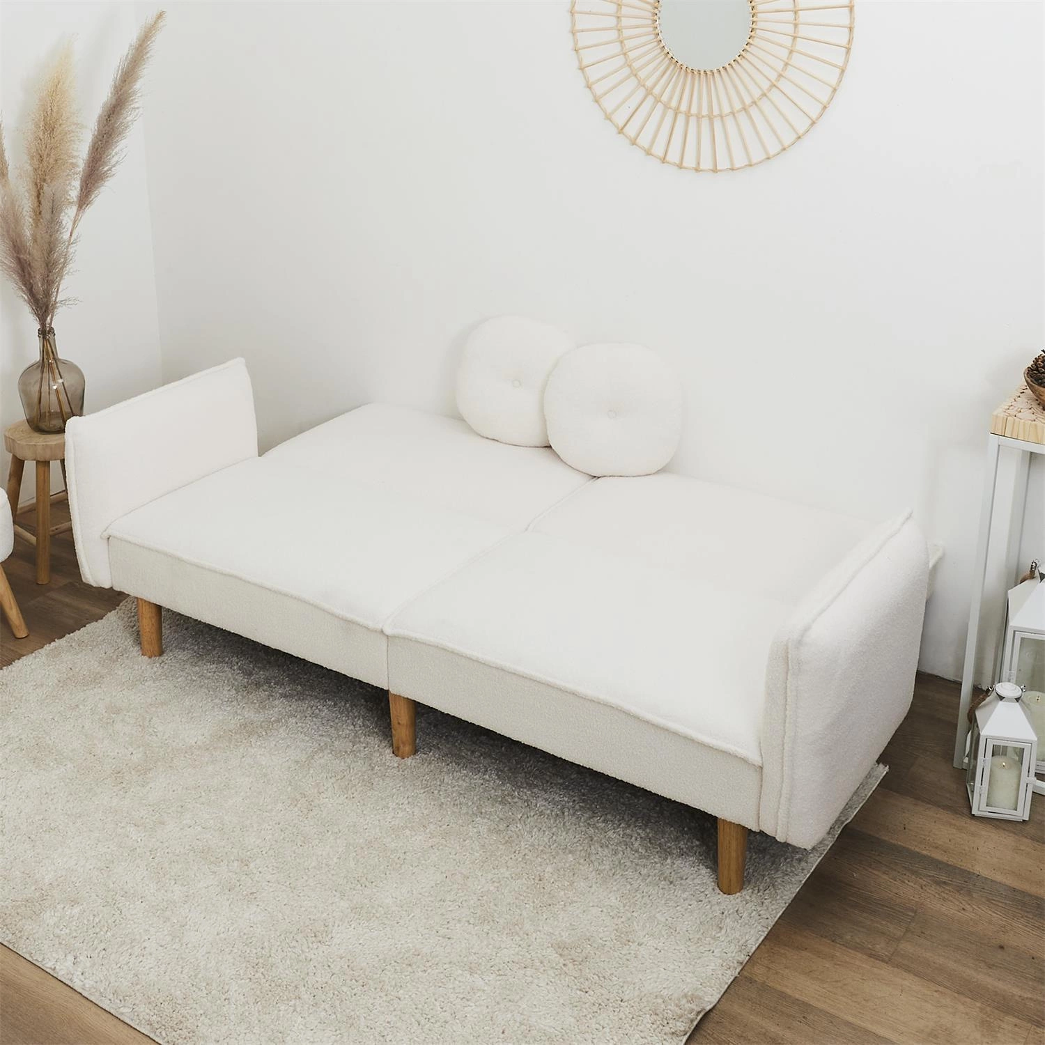 Rozkládací pohovka Boghena od značky Intesi je navržena s ohledem na každodenní pohodlí a funkčnost v duchu skandinávského minimalismu. Jedná se o dvoumístnou pohovku s funkcí spaní, čalouněnou na dotek příjemnou látkou ve světle béžovém odstínu, postavenou na vysokých, přírodních nohách z eukalyptového dřeva. Díky rozměrům 198 cm na šířku a 90 cm na hloubku a praktickému mechanismu Klik-Klak získáte pohodlné místo k odpočinku v obývacím pokoji, pracovně nebo ložnici – a v případě potřeby snadno proměníte pohovku na postel pro dvě osoby.