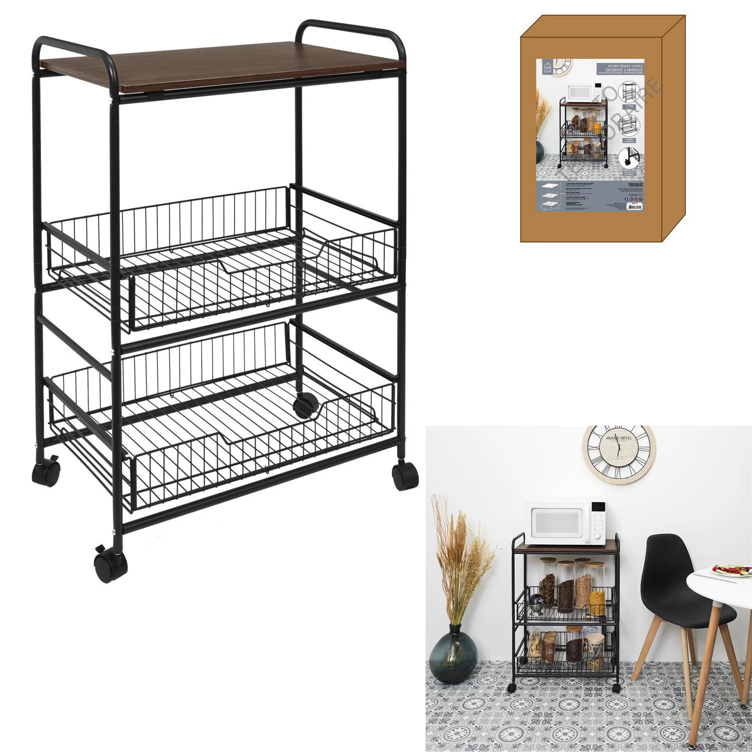 Dolie kovový barový vozík na kolečkách značky Intesi je moderní mobilní stolek se dvěma úrovněmi polic, který spojuje praktičnost s industriálním stylem. Je vyrobený z odolného kovu a nábytkové desky v odstínu tmavého ořechu, nabízí pevnou pracovní plochu o šířce 60 cm a hloubce 36 cm – ideální pro servírování nápojů nebo občerstvení. Díky čtyřem otočným kolečkům s funkcí blokace snadno přesunete vozík do obývacího pokoje, kuchyně nebo jídelny a vytvoříte mobilní servisní zónu kdykoli potřebujete.