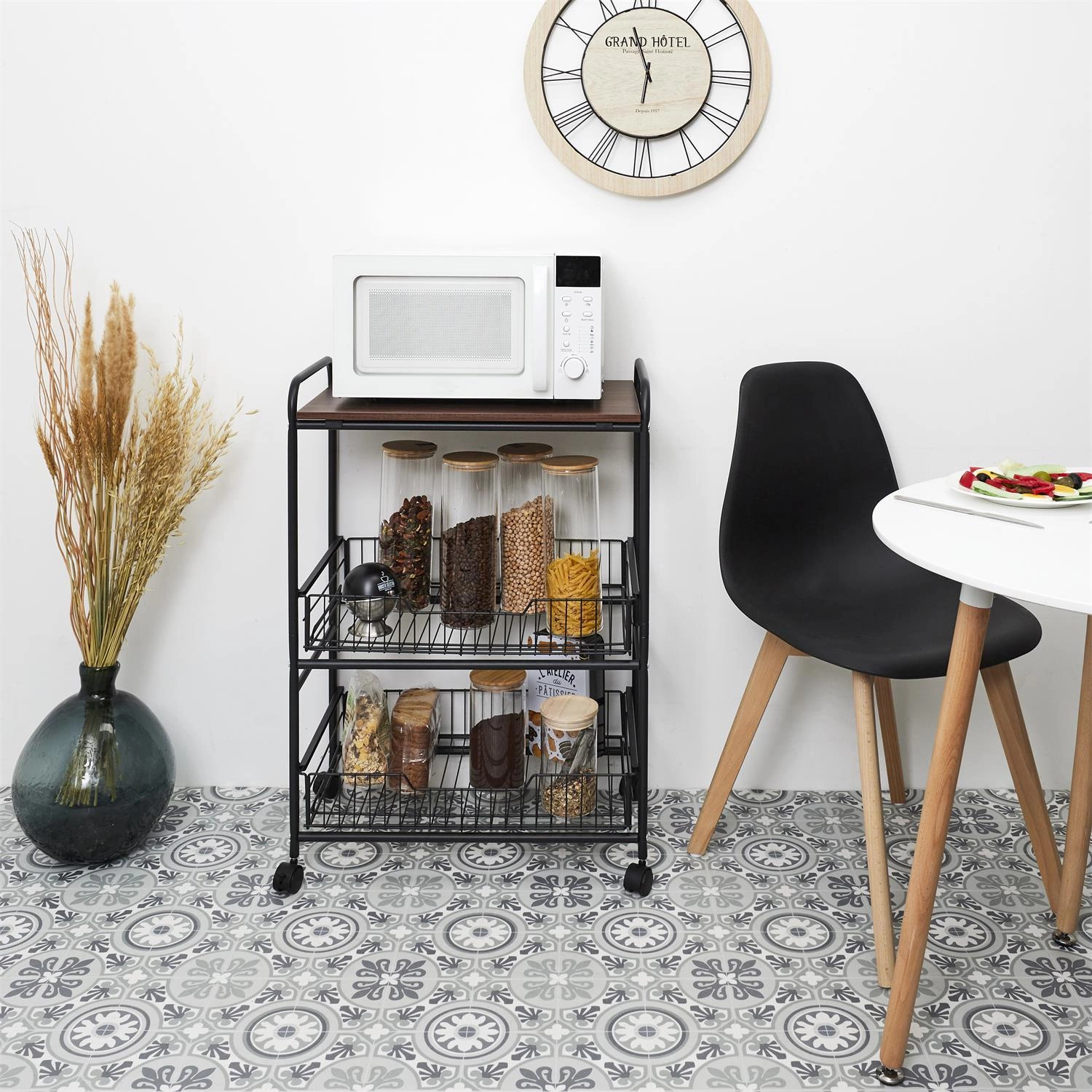 Díky své konstrukci je Dolie ideální jako barový vozík na kolečkách pro servírování drinků při společenských setkáních, jako pomocný stolek v kuchyni či jídelně, nebo dokonce jako praktický organizér v domácí kanceláři. Dvě přídavné police poskytují prostor na sklenice, láhve, pochutiny i příslušenství, takže vše potřebné máte stále na dosah. Maximální nosnost vozíku je 30 kg – bez obav na něj můžete uložit i těžší předměty.