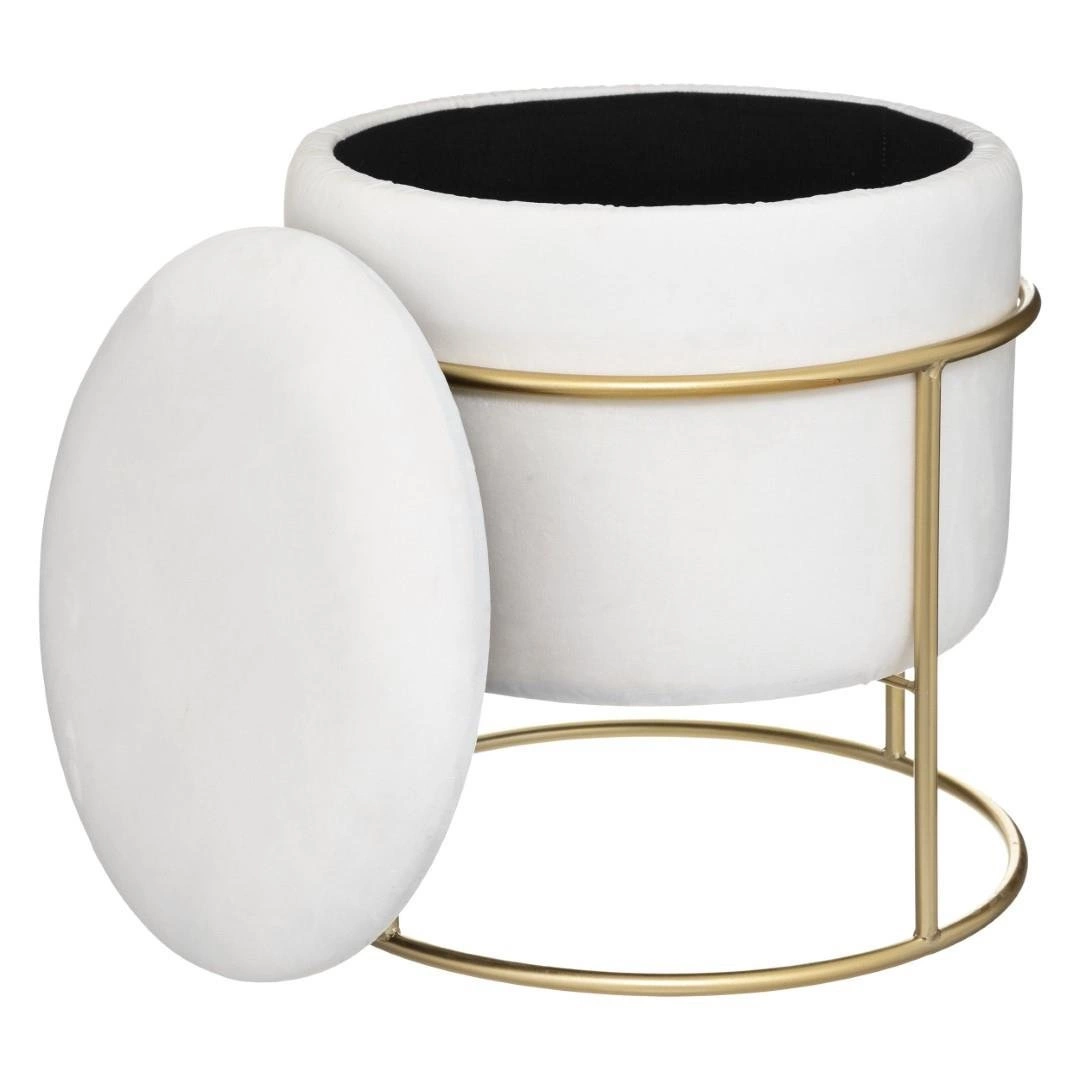 Taburet Křeslo Eliane se svým válcovitým tvarem sedáku a zlatým podstavcem stoprocentně zapadá do moderního glamour stylu. Kulatý sedák je umístěn na zlatém kovovém podstavci. taburet Neobvyklý , který ve standardních interiérech těžko najdete. Taburet Sedačka Eliane je sama o sobě mimořádně dekorativní. Taburet lze ji použít jako designový podnožník nebo jako další sedátko v malém bytě. Taburet Eliane je také zajímavým sedákem na toaletní stolek. Vnitřek pufu tvoří pevná MDF deska čalouněná měkkou potahovou houbou. Potahovou látkou je na dotek příjemný velur. rozměry kartonu: 1,5 x 2,5 cm: součástí balení je také taburet: 43x43x83cm