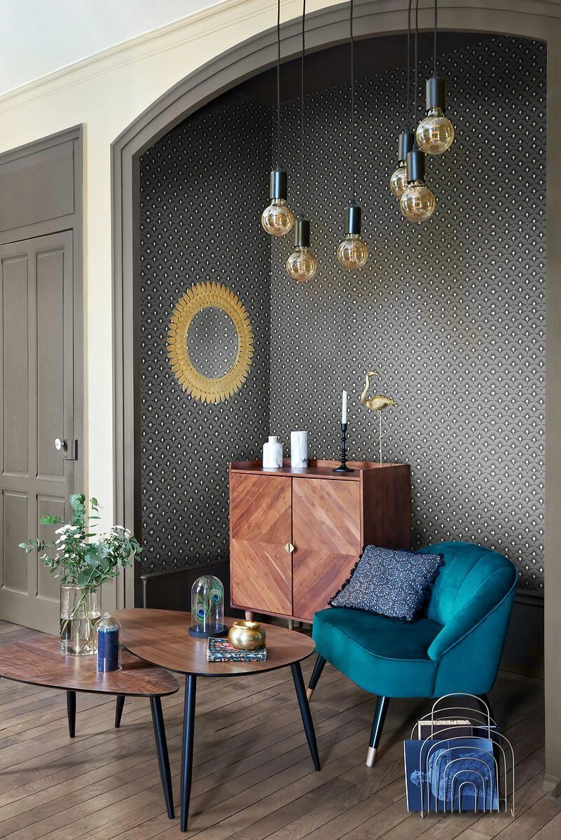 - Trojúhelníková deska v ořechovém odstínu – originální design a teplý akcent v obývacím pokoji