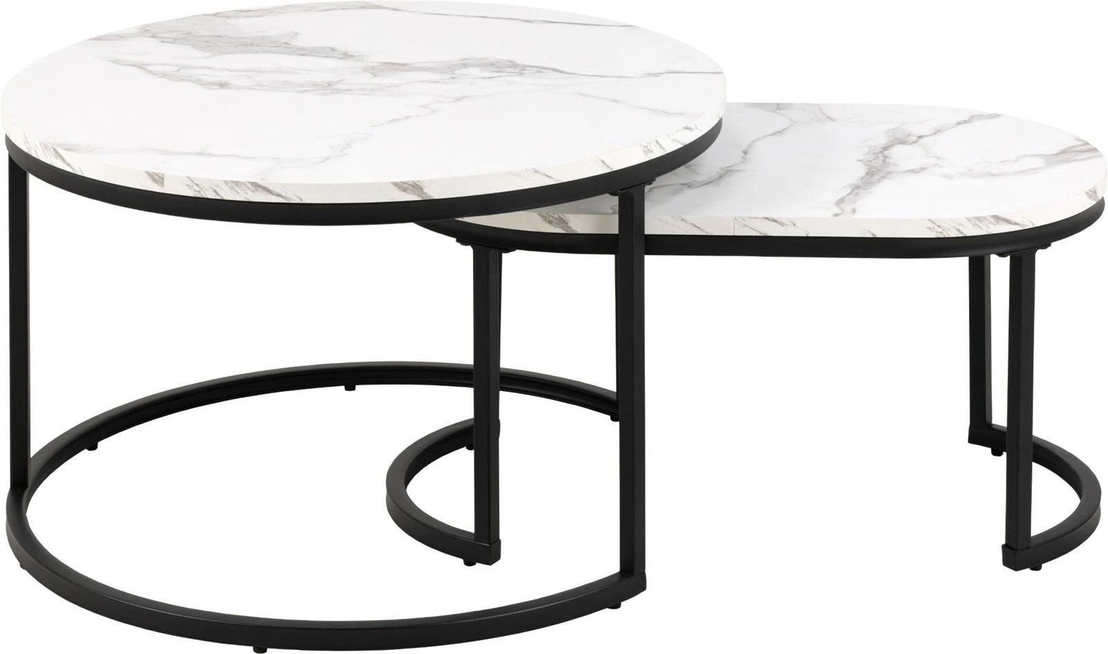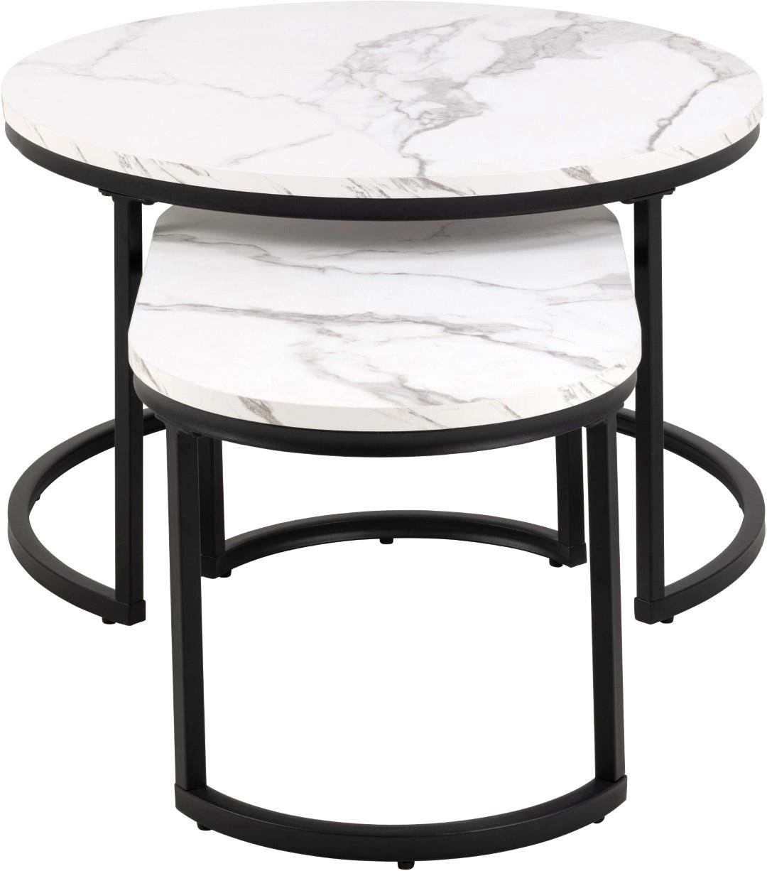 Sada stolků Spiro nabízí nejen stylový vzhled, ale i maximální funkčnost. Díky možnosti zasunutí menšího stolku pod větší získáte více prostoru vždy, když to potřebujete. Toto praktické řešení ocení především ti, kteří mají menší byt nebo hledají flexibilní nábytek do dynamických interiérů. Elegantní kombinace bílého mramoru a černého kovu zaručuje, že stolky skvěle zapadnou do glamour, moderních i industriálních obývacích pokojů.- Sada dvou konferenčních stolků – více možností aranžmá při jednom nákupu.