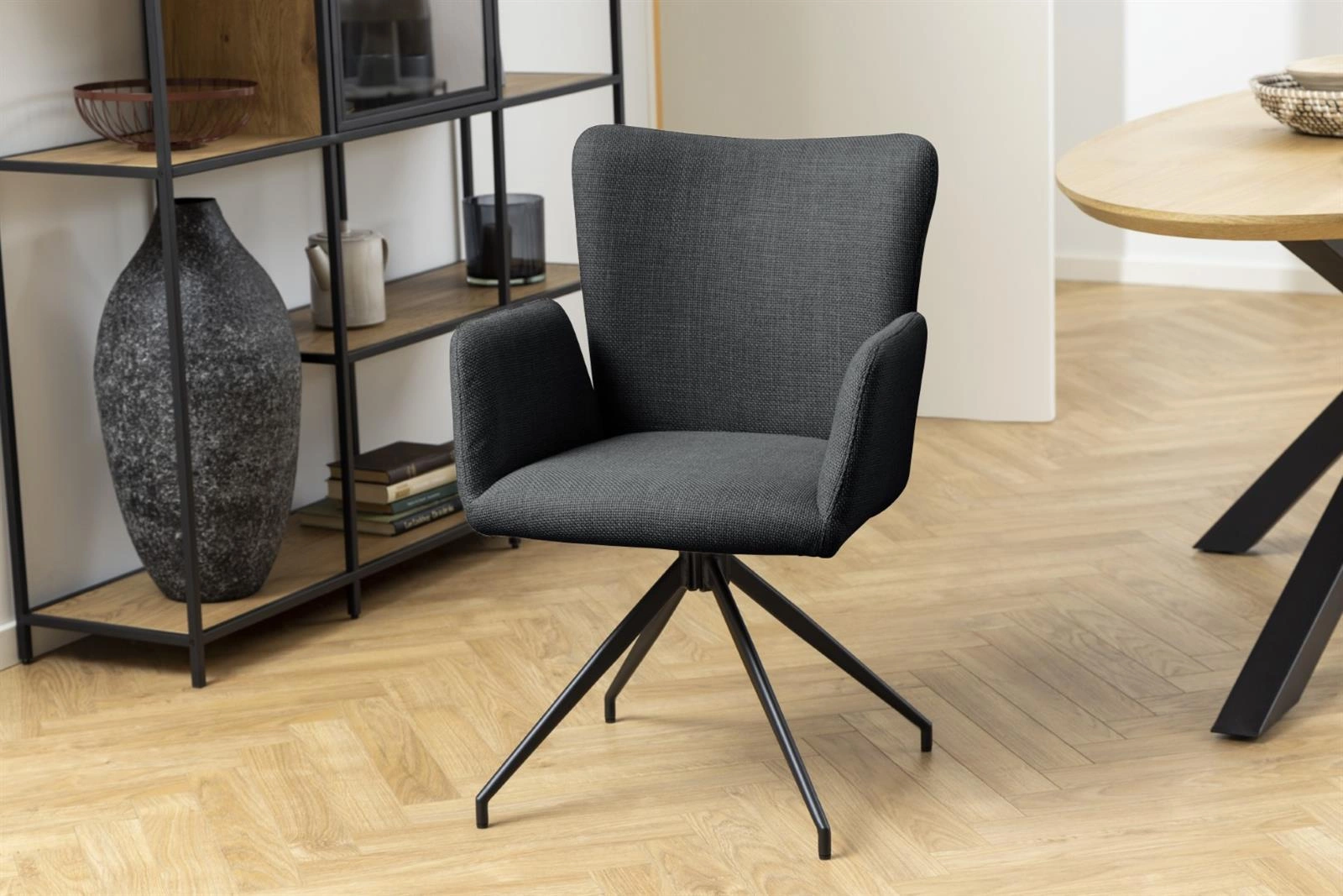 Křeslo je navíc vyrobeno z odolných materiálů, které nezklamou ani při intenzivním používání. Horní část židle je doplněna polyuretanovou pěnou, která zajišťuje vynikající pružnost a pohodlí po dlouhé hodiny. Její povrch je naopak čalouněn látkou Basel tmavě šedá 19, jejíž klasická vazba byla na okrajích esteticky zakončena . Základnu židle tvoří čtyři kovové nohy s práškovou povrchovou úpravou v matné černé barvě. Volba těchto materiálů umožňuje krásný vzhled a snadnou údržbu.