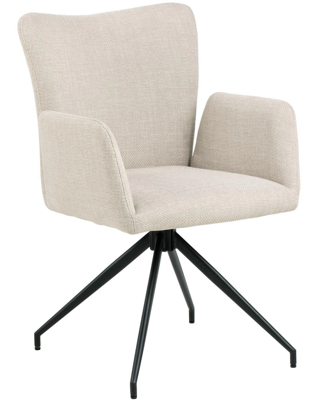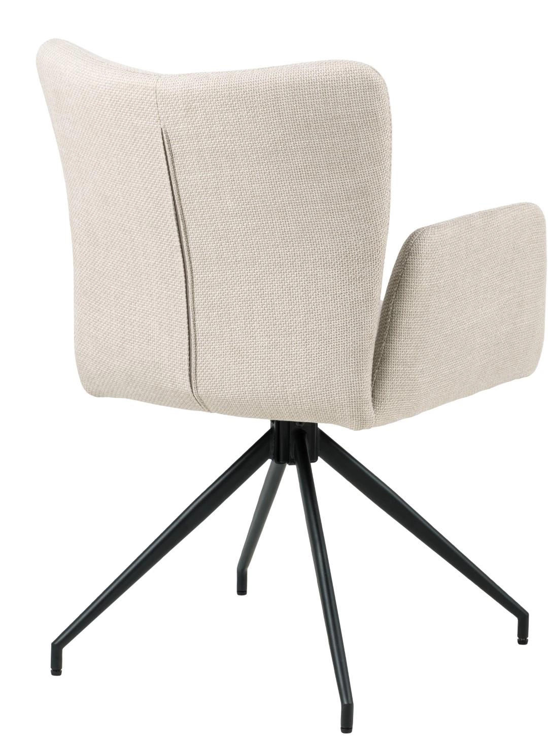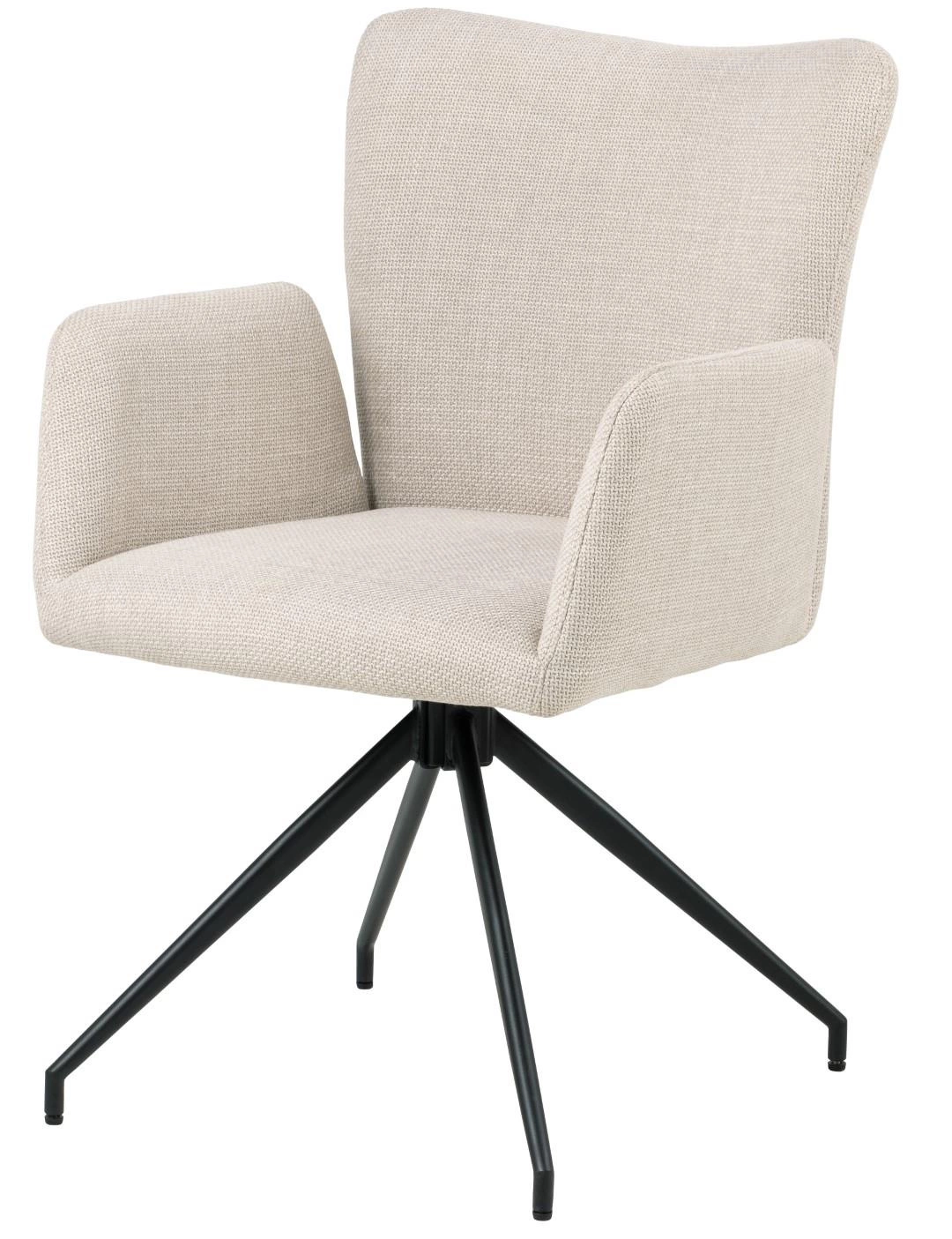 Jídelní židle Laura od značky Actona je moderní, čalouněná otočná židle v béžovém odstínu, vybavená pohodlnými područkami. Kombinuje měkký sedák o výšce 48 cm, stabilní kovovou základnu v lesklé černé barvě a ergonomicky tvarované opěradlo. Model Laura byl navržen s ohledem na maximální pohodlí při každodenním stolování, práci nebo rodinných setkáních.