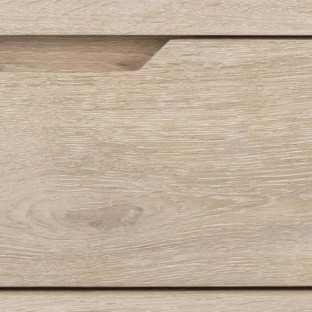 TV komoda z řady A-line je vyrobena z MDF desky dýhované v přírodní barvě běleného dubu, což zajišťuje její pevnost a odolnost při každodenním používání. Polomatná povrchová úprava chrání povrch před drobnými škrábanci a usnadňuje čištění. Investujete tak do nábytku, který vás potěší nejen svou funkčností, ale bude i krásnou ozdobou vašeho obývacího pokoje po dlouhá léta. Skandinávská TV skříňka A-line je skvělou volbou pro ty, kdo oceňují jednoduchost, vysokou kvalitu zpracování a nadčasový styl.