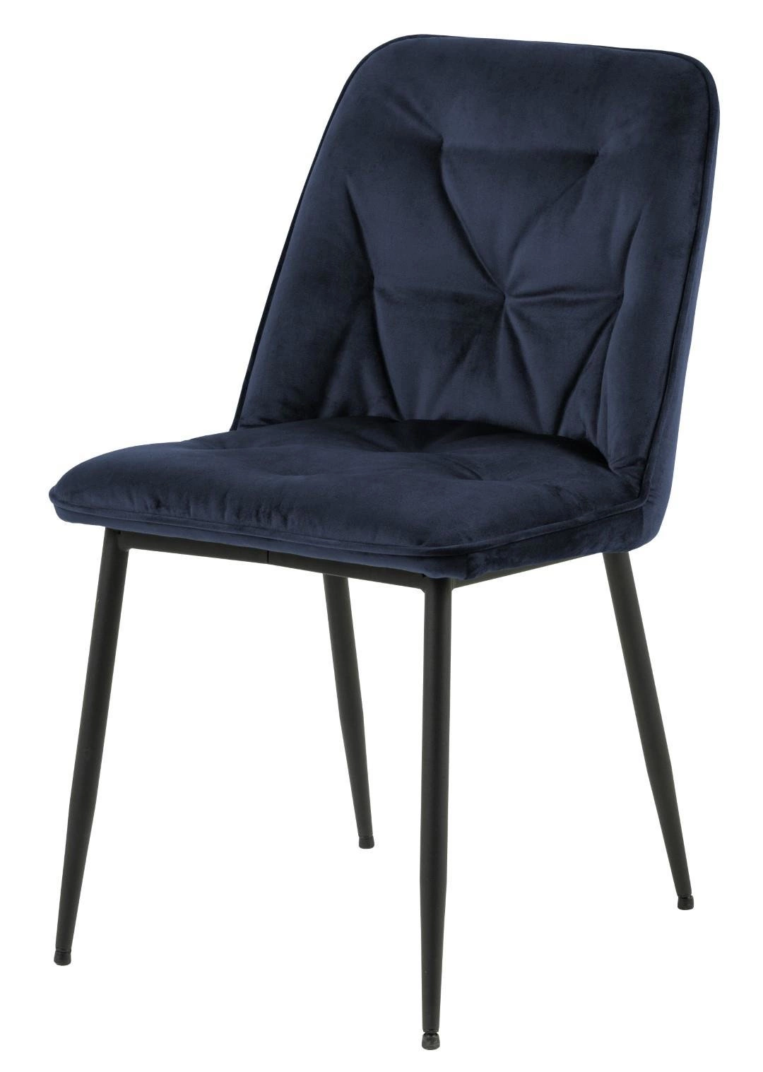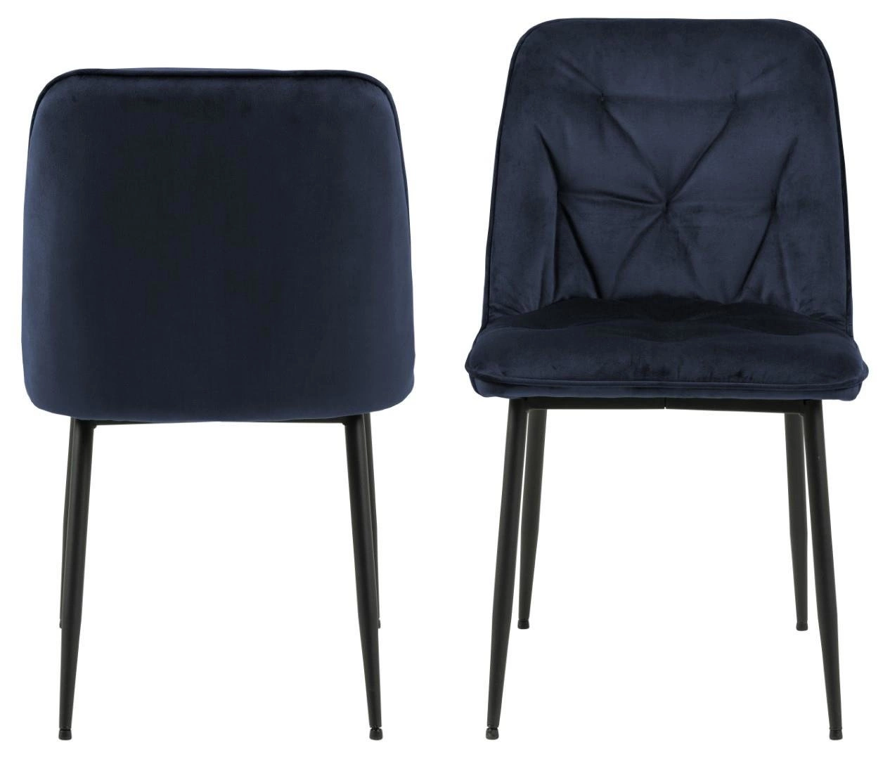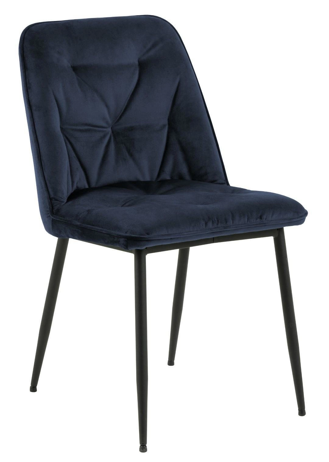 Design židle Brooke perfektně zapadá do aktuálních trendů v interiérovém designu. Charakteristické prošívání a výrazná tmavě modrá sametová látka z ní dělají dominantní prvek v jídelně nebo obývacím pokoji zařízeném v moderním či glamour stylu. Černé matné kovové nohy podtrhují současný charakter nábytku a kompaktní rozměry umožňují snadné umístění ke stolu v menších i větších prostorech.