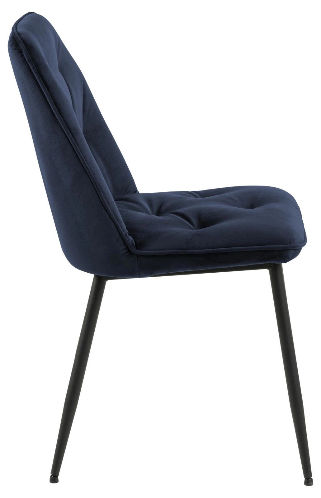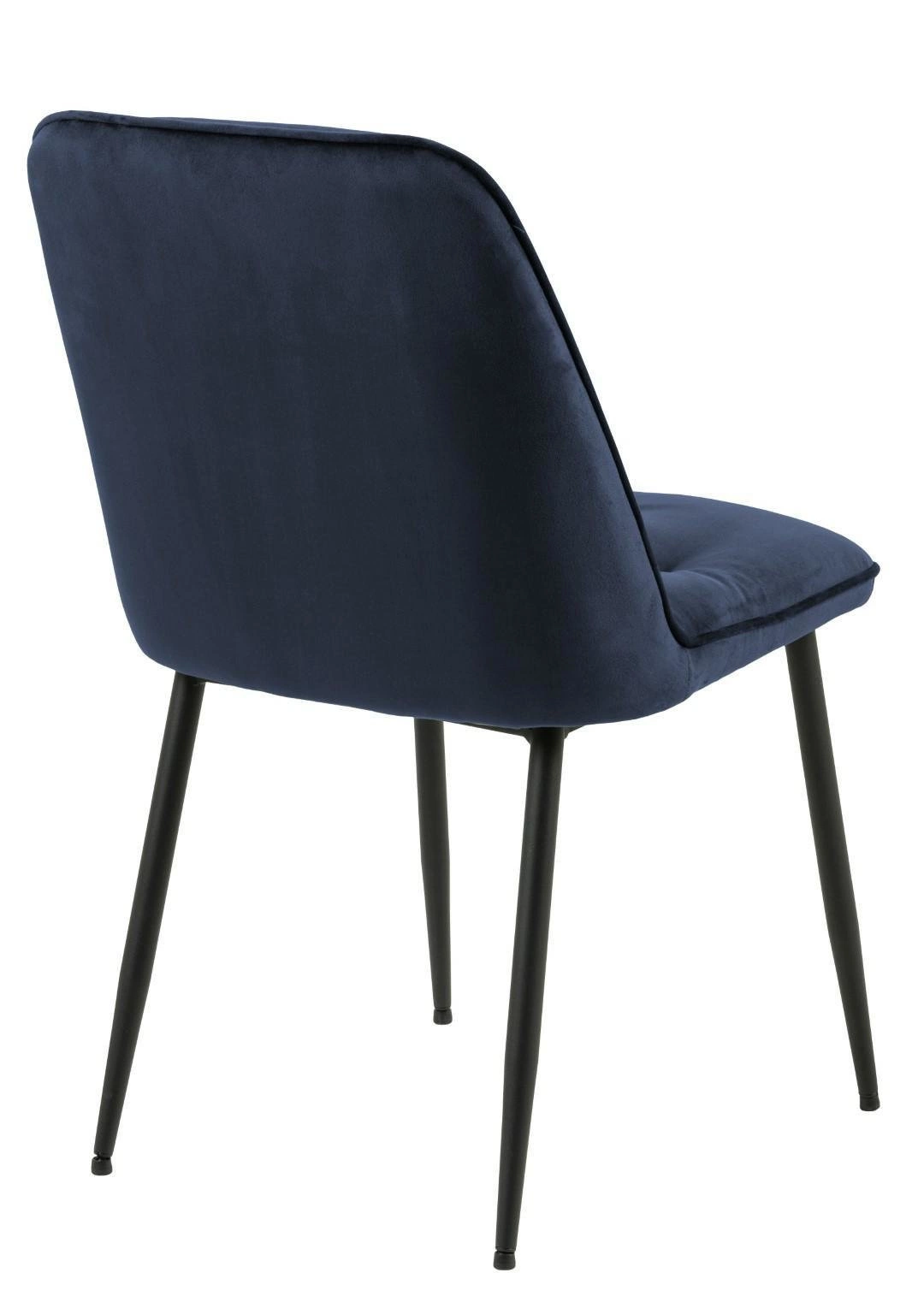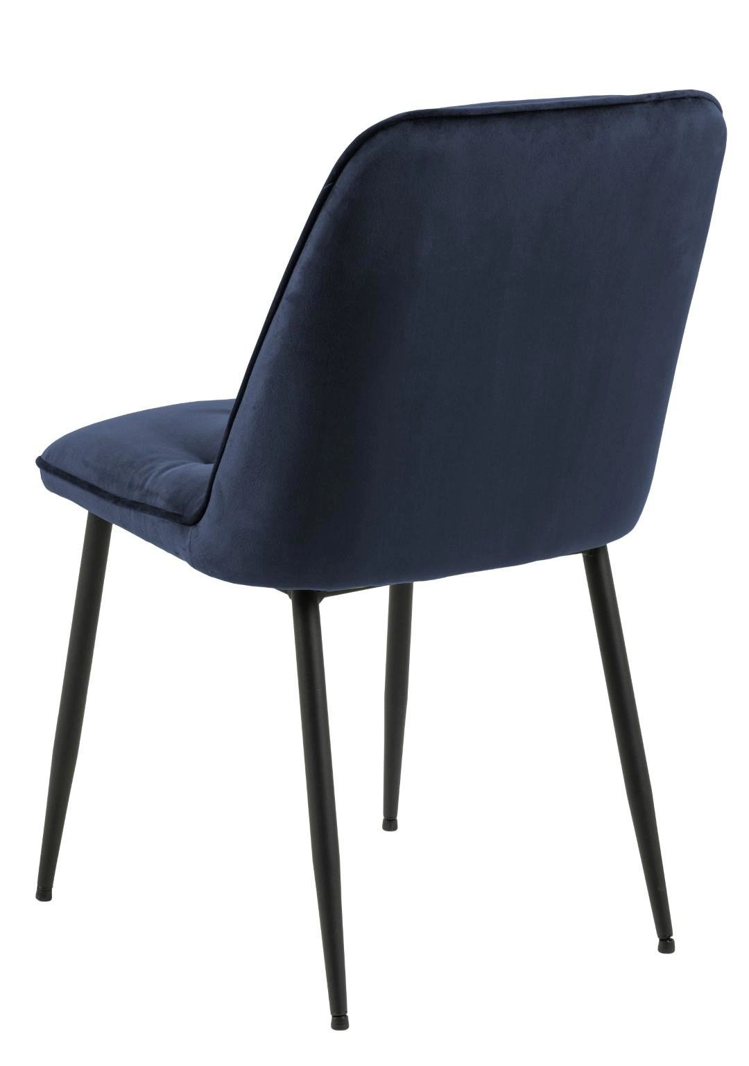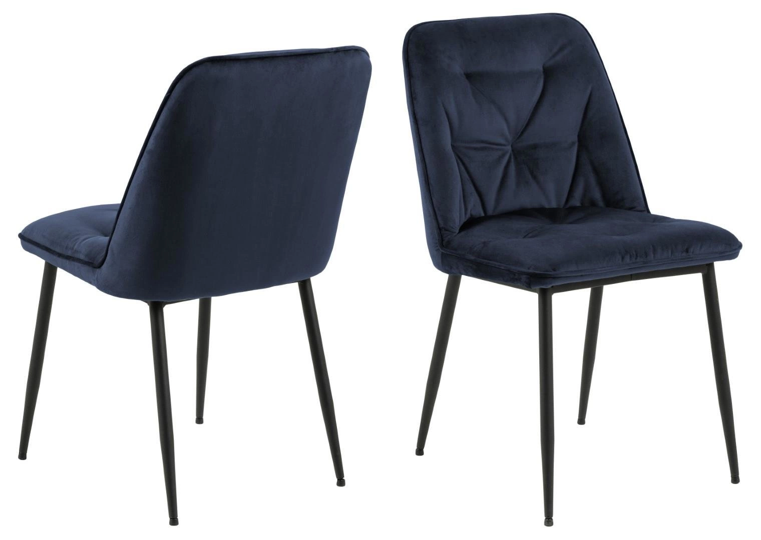 Design židle Brooke perfektně zapadá do aktuálních trendů v interiérovém designu. Charakteristické prošívání a výrazná tmavě modrá sametová látka z ní dělají dominantní prvek v jídelně nebo obývacím pokoji zařízeném v moderním či glamour stylu. Černé matné kovové nohy podtrhují současný charakter nábytku a kompaktní rozměry umožňují snadné umístění ke stolu v menších i větších prostorech.