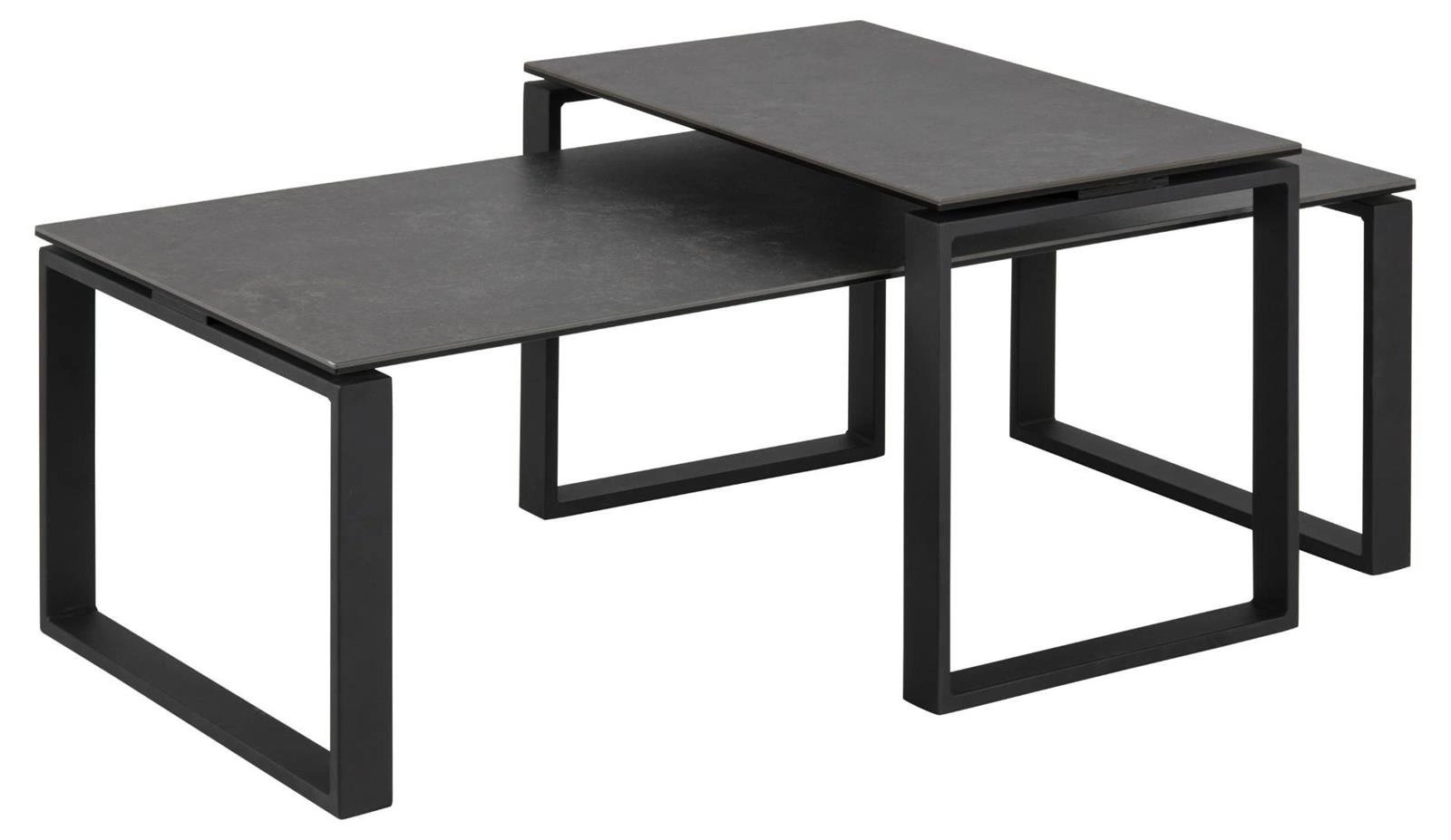 Sada 2 konferenčních stolků Katrine černý mramor obdélníkový loft do obýváku Actona – funkční elegance v industriálním stylu