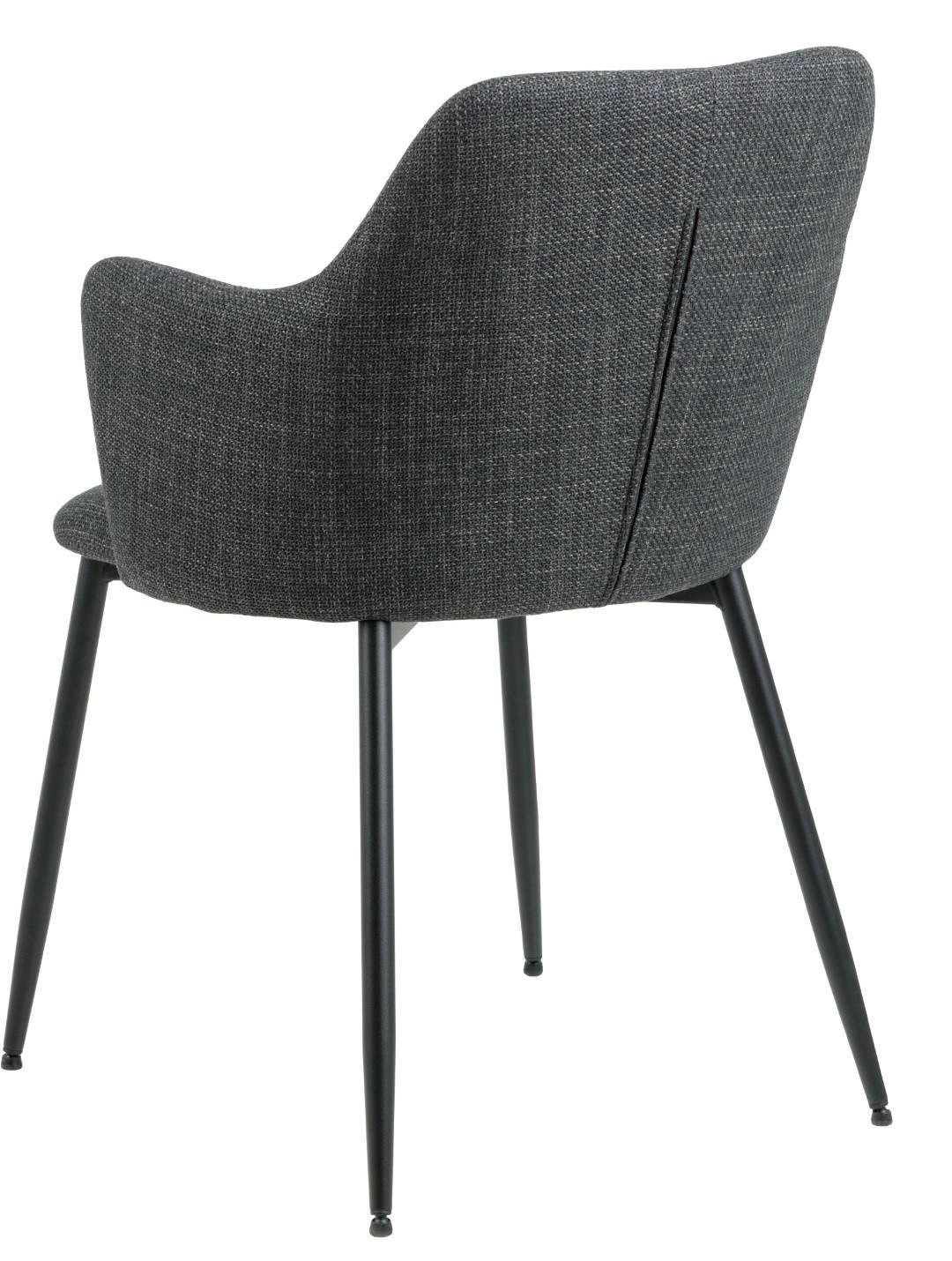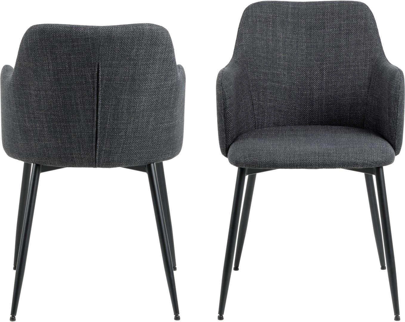 Židle Verno Grey Arm od značky Actona je esencí moderního pohodlí – čalouněná tmavě šedou látkou, s pohodlnými područkami a stabilní matnou základnou na čtyřech černých nohách. Nabízí optimální výšku sedáku 49 cm a šířku 54,5 cm, skvěle se hodí jako jídelní židle, židle do obývacího pokoje nebo kuchyně. Skořepinový tvar, měkká výplň a ergonomicky tvarovaná opěrka zajišťují maximální relax při společných jídlech i setkáních.