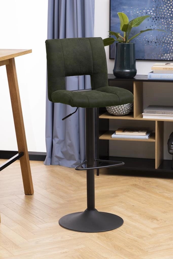 Hoker Sylvia zelený od značky Actona je moderní barová židle s čalouněným sedákem, vybavená pohodlnou opěrkou, otočnou funkcí a plynulým nastavením výšky. Kovová základna v matné černé barvě zajišťuje stabilitu a dlouhou životnost, zatímco tvarované sedadlo z čalounické pěny je potažené látkou v hlubokém odstínu zelené. Tento model je ideální jako barová židle do kuchyně, k ostrůvku nebo do jídelny – nabízí komfort i styl pro každodenní použití.
