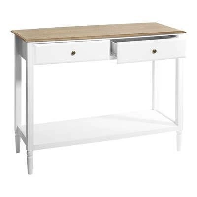 Konzole Solen bílá se zásuvkami a policí od značky Atmosphera je moderní přístavný stolek o šířce 110,5 cm, vyrobený z odolného borovicového dřeva a MDF desky. Kombinace bílé barvy s přírodním dřevem a lesklou povrchovou úpravou dává tomuto úzkému stolku do předsíně nebo obývacího pokoje svěží, minimalistický vzhled, který perfektně zapadne do moderního interiéru. Je vybaven dvěma praktickými zásuvkami a prostornou policí, které poskytují pohodlí při každodenním používání.