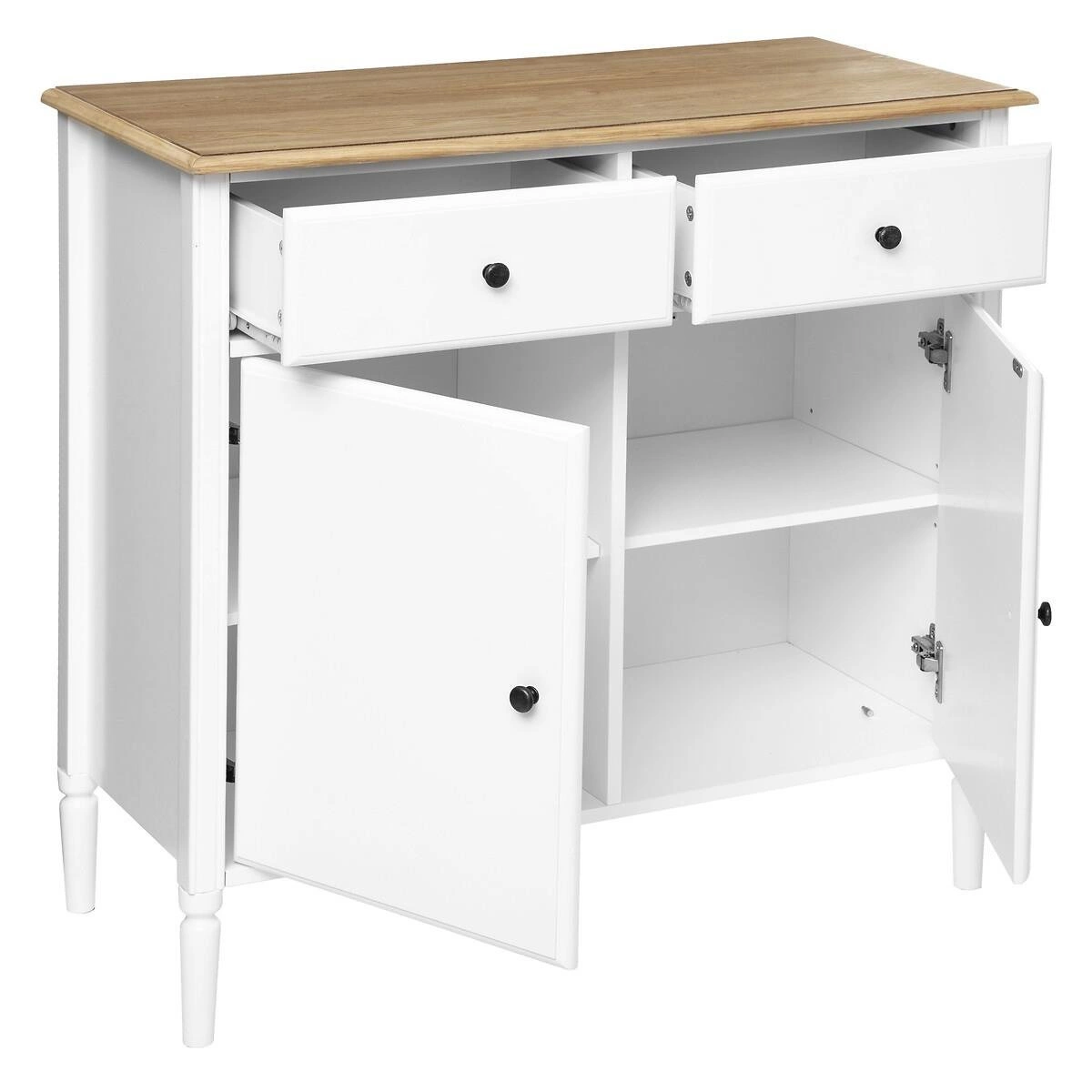 Bílá komoda se zásuvkami Solen 88 cm od značky Atmosphera je elegantní kus nábytku ve skandinávském stylu, navržený pro funkčnost a estetiku moderního interiéru. Vybavená dvěma prostornými zásuvkami a dvěma praktickými skříňkami, komoda o šířce 88 cm a výšce 85,5 cm se skvěle hodí jak do ložnice, tak do obývacího pokoje. Světlé, matné čelo v bílé barvě a decentní deska v přírodním dřevěném odstínu dodávají komodě lehkost a podtrhují její univerzální charakter.