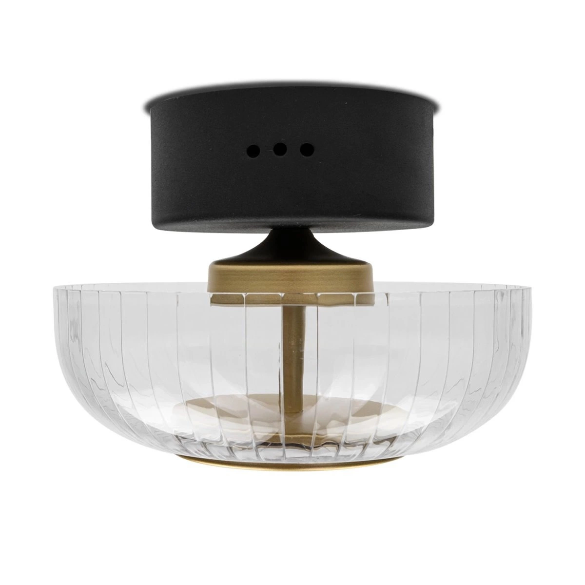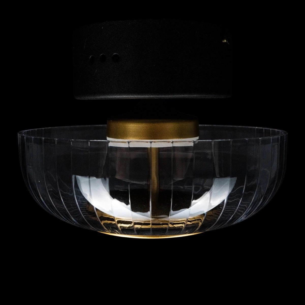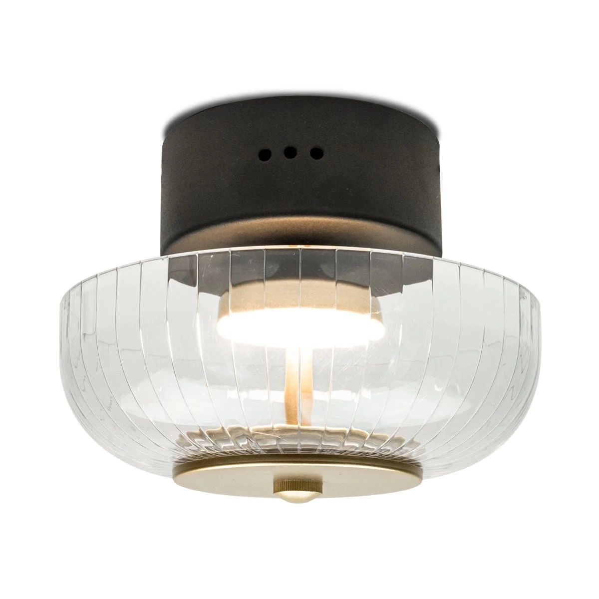 LED stropní svítidlo Vitrum CW od značky ALTAVOLA DESIGN je moderní stropní lampa v glamour stylu, která zaujme elegantními tvary a precizně zpracovanými detaily. Kulatý plafon o průměru 20 cm a výšce 16 cm je vyroben z transparentního skla a kovu v černé a zlaté povrchové úpravě. Integrovaný LED zdroj o výkonu 7,2W vydává příjemné, jemně teplé světlo 3000K, které zajišťuje nejen exkluzivní vzhled, ale i pohodlné každodenní používání.