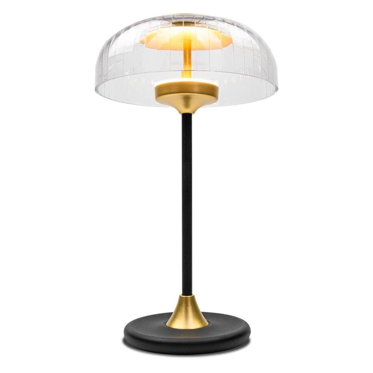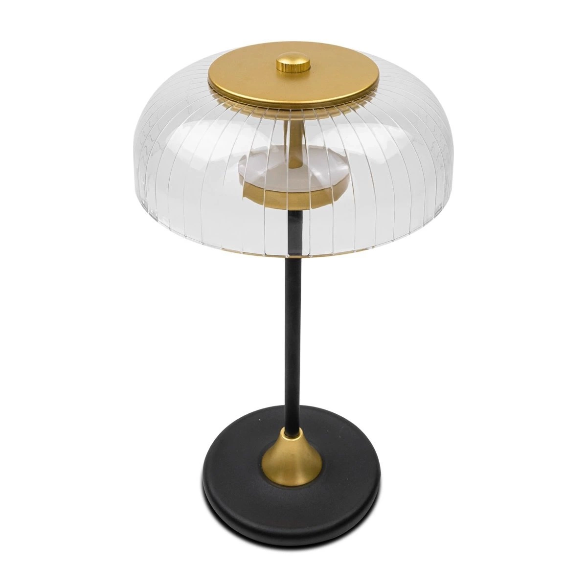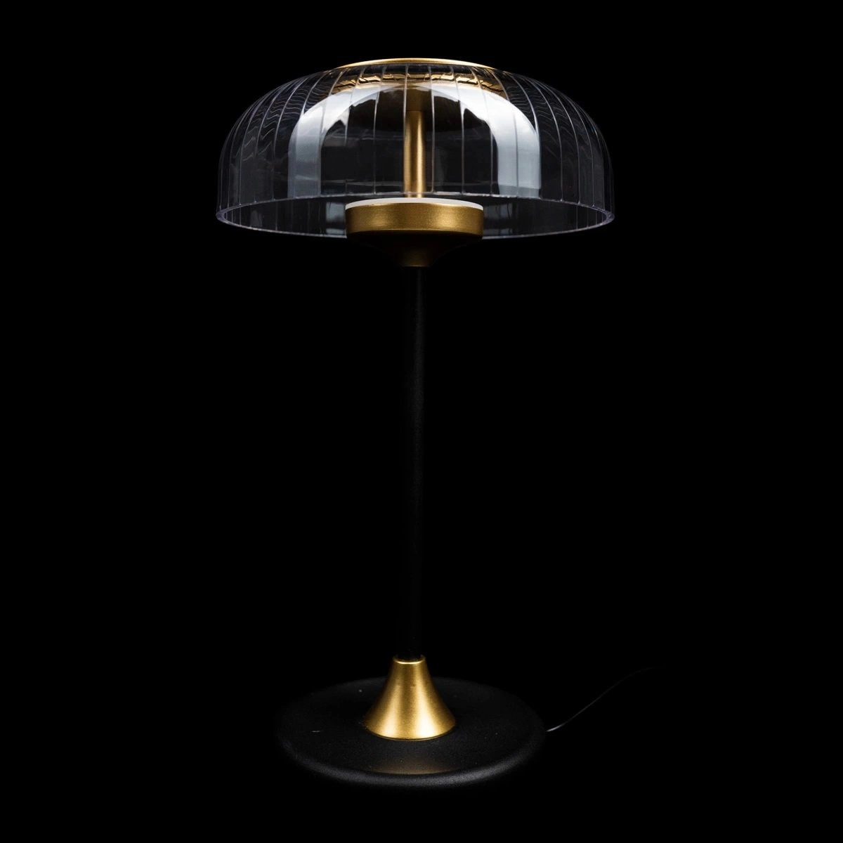 Vitrum je noční lampička, která dodává interiéru luxusní charakter díky harmonickému spojení černých a zlatých detailů. Průhledné skleněné stínidlo jemně rozptyluje světlo a vytváří útulnou atmosféru vhodnou pro večerní odpočinek. Moderní design zajišťuje, že lampička skvěle zapadne jak do glamour interiérů, tak i do elegantně zařízených prostor.