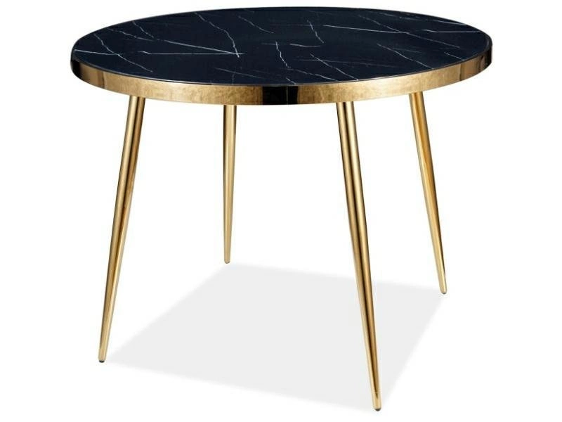 Hledáte způsob, jak dodat svému domovu trochu klasického půvabu? Nehledejte nic jiného než stůl Coolio! Tato kulatá deska nabízí sofistikovanou estetiku do každého obytného prostoru. Ohromující zlaté hrany a nohy dodávají atmosféru moderní elegance, zatímco deska z tvrzeného skla dodá vašemu interiéru další šmrnc! Pod povrchem tohoto robustního materiálu se nachází černý mramorový vzor, který dodává desce dávku jemné sofistikovanosti, jež jistě upoutá pozornost. Robustní kovový rám a plastové nožky zajišťují nejen vynikající pevnost a dlouhou životnost, ale také chrání před poškrábáním podlahy. S rozměry 100x75 poskytne tento velkolepý kousek nadčasový půvab od nynějška až do příští sezóny - co si nezamilovat? Investujte do stolu Coolio pro věčný půvab a vylepšete svůj interiér odvážnou krásou!