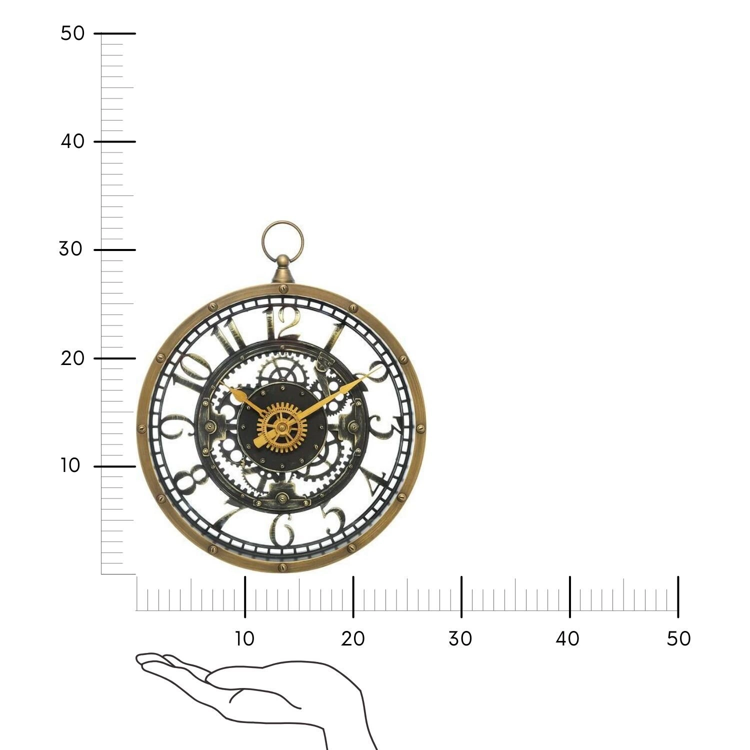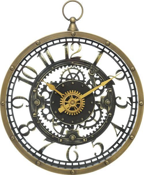 Nástěnné hodiny industrialní Meca Atmosphera jsou výrazným dekoračním prvkem, který spojuje syrovou eleganci patinovaného zlata s motivem mechanických ozubených kol. Jejich vzdušný ciferník o průměru 27 cm, zasazený do kovového rámu, skvěle podtrhne charakter každého obývacího pokoje, kanceláře nebo jídelny. Tento model zaujme nejen originálním designem inspirovaným loftovým stylem, ale zároveň zaručuje snadnou čitelnost díky výrazným ručičkám na kontrastním podkladu.