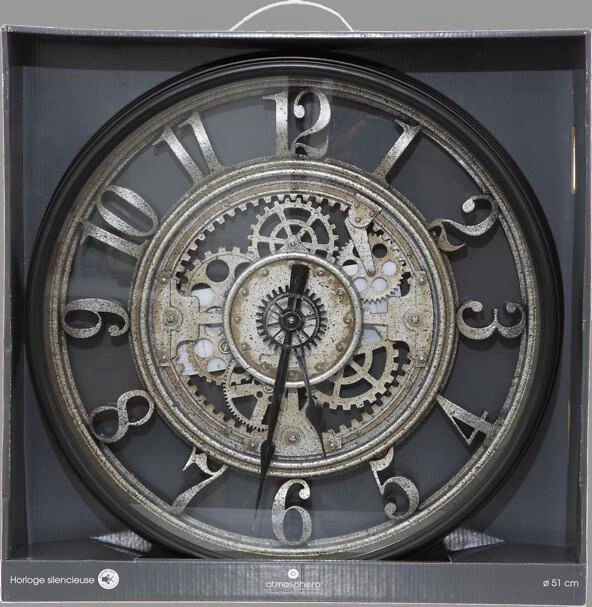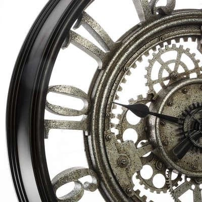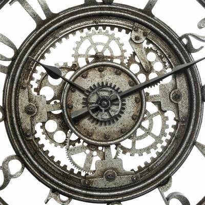 Hodiny Meca dodají vašemu domovu industriální nádech. Tento kulatý stříbrný doplněk má ažurový ciferník připomínající pracovní ozubená kola a černé ručičky, které kontrastují s tmavými prvky ciferníku. Tyto hodiny jsou napájeny bateriemi a hodí se do každé místnosti ve vaší domácnosti.