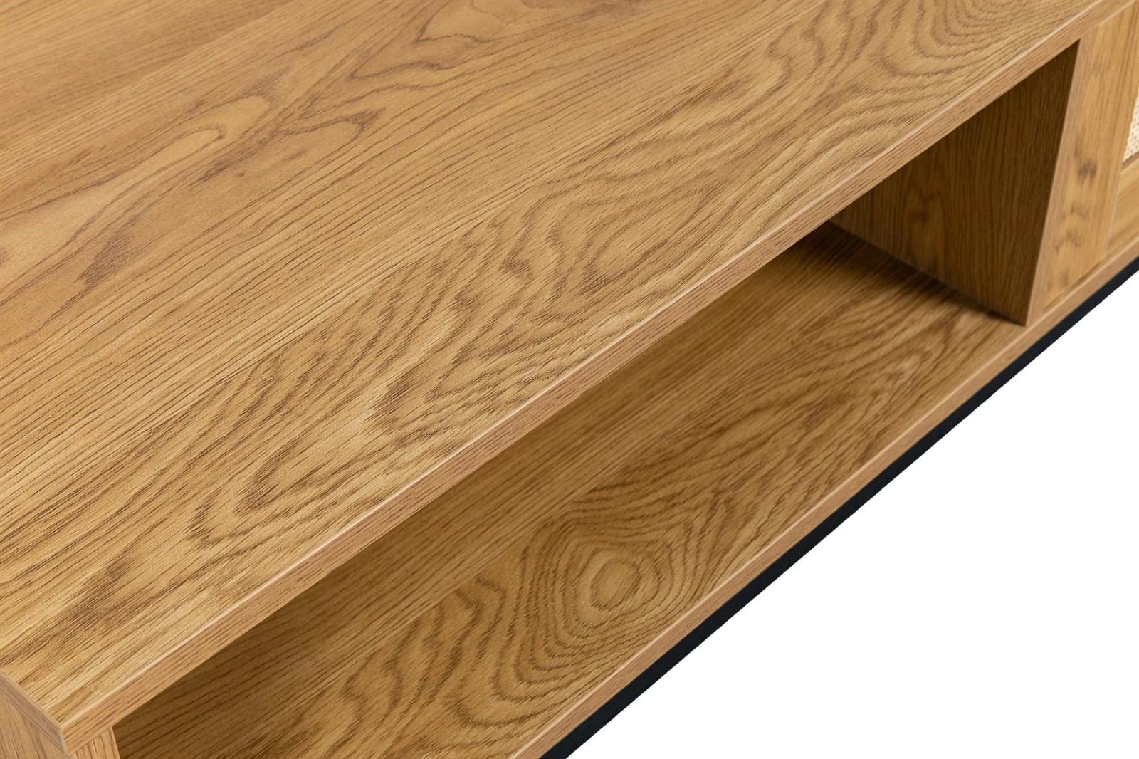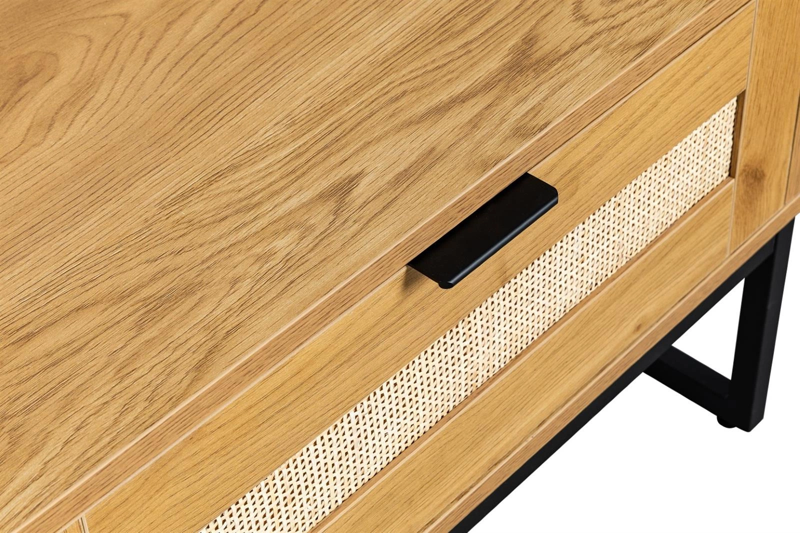 Obdélníkový konferenční stolek Capri boho s ratanovým čelem a zásuvkou do obýváku 120x60 cm od značky Intesi – spojení boho stylu a praktičnosti