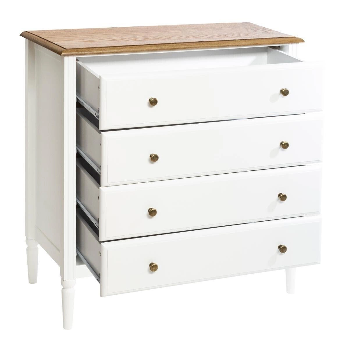 Bílá komoda se zásuvkami Solen 80 cm od značky Atmosphera je spojením moderního designu, praktičnosti a nadčasového skandinávského stylu. Díky čtyřem prostorným zásuvkám a stabilním dřevěným nohám je ideální volbou jako komoda do ložnice, ale skvěle se hodí i do obývacího pokoje nebo předsíně. Matný bílý povrch v kombinaci s přírodními dřevěnými detaily vnáší do interiéru lehkost a svěžest, díky čemuž je komoda nejen praktickým, ale i stylovým dekorativním prvkem vašeho domova.