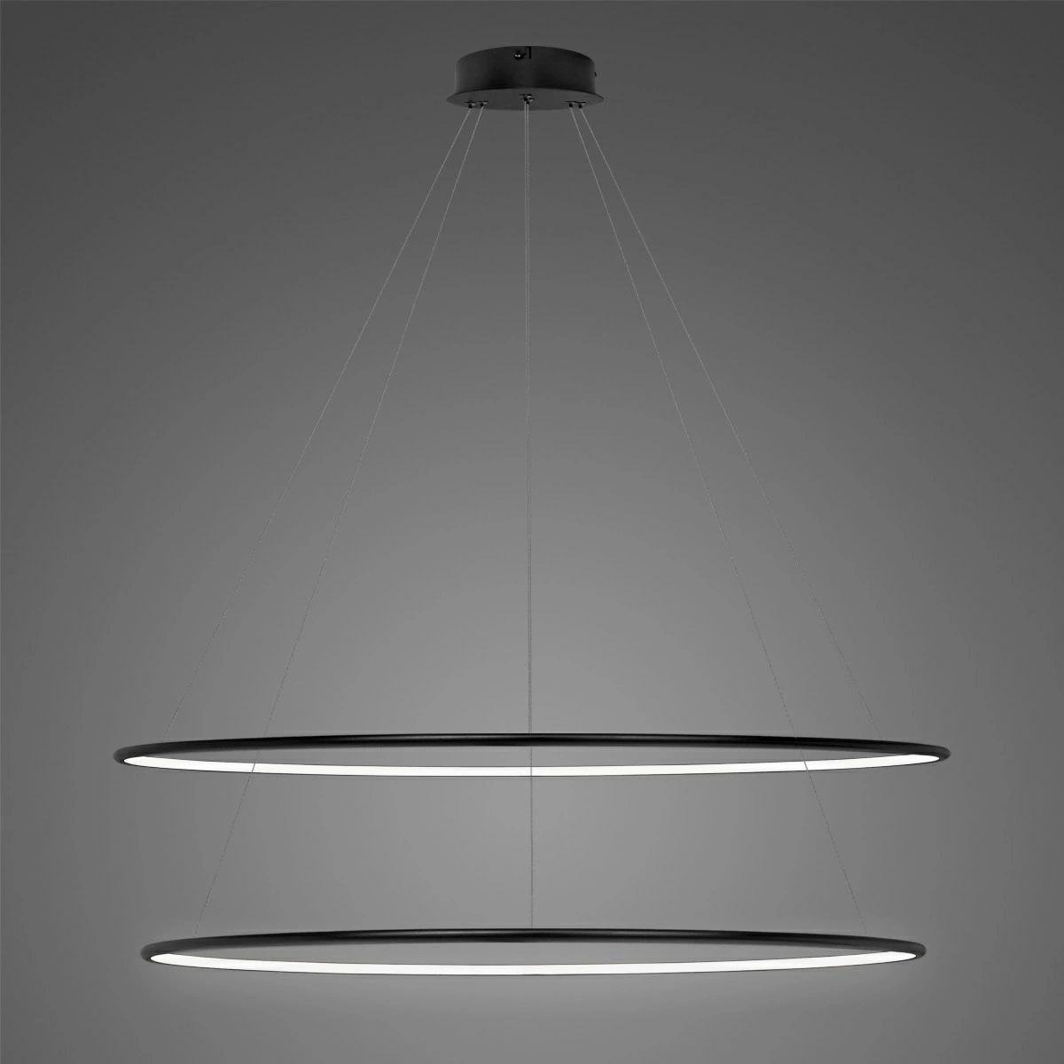Stropní LED svítidlo Ledowe Okręgi 120 cm od značky Altavola Design je moderním řešením osvětlení pro obývací pokoj, jídelnu nebo reprezentativní předsíň. Impozantní průměr 120 cm a minimalistická černá konstrukce z kovu a plastu podtrhnou charakter velkých, otevřených prostor. Nastavitelná výška zavěšení umožňuje perfektní přizpůsobení lampy výšce místnosti nebo rozmístění nad stolem.