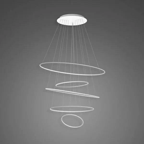 Moderní závěsné LED svítidlo Ledowe Okręgi 120 cm od ALTAVOLA DESIGN je ideální volbou pro milovníky minimalistického designu a výrazných řešení. Zaujme velkým průměrem, precizním bílým provedením a funkcí stmívání, díky které snadno přizpůsobíte intenzitu světla každé příležitosti. Nastavitelná výška zavěšení a integrovaný LED zdroj zajišťují pohodlné používání jak v prostorném obývacím pokoji, tak i nad jídelním stolem.