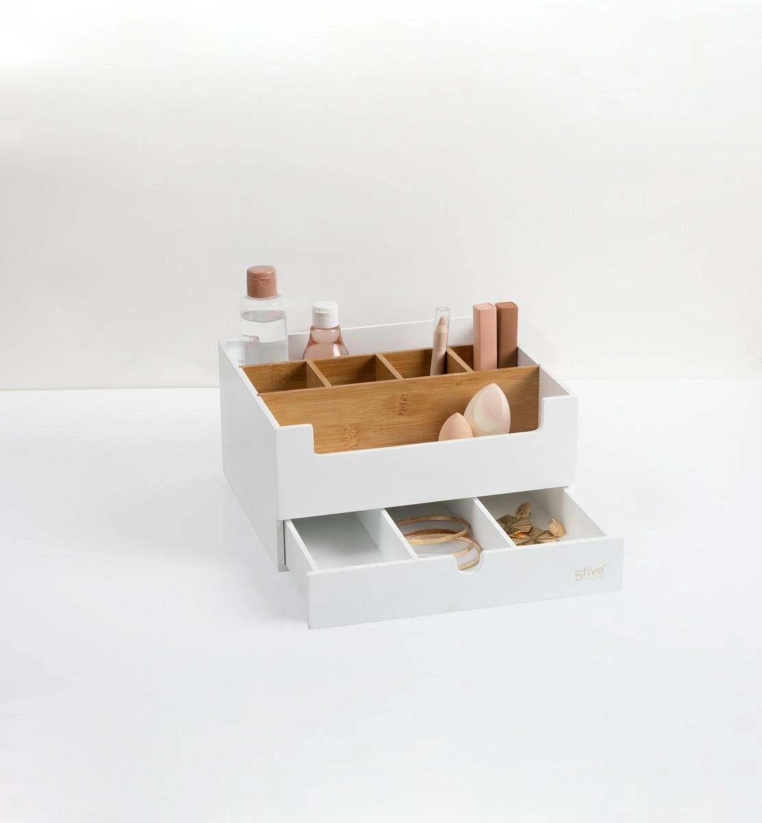 Organizer na kosmetiku Natureo od 5five simply smart je volba pro ty, kteří si cení pořádku, estetiky a praktičnosti každý den. Postarejte se o pořádek v koupelně nebo na toaletním stolku a užívejte si krásně zorganizovaný prostor každé ráno.