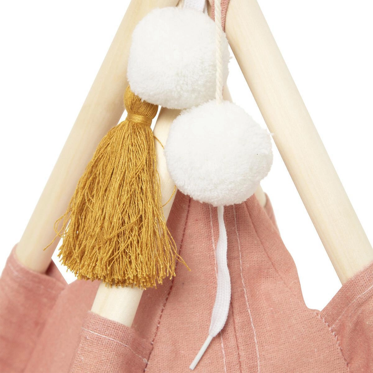Rám je vyroben z topolového dřeva, které je známé svou lehkostí a odolností, zatímco potah je vyroben ze směsi bavlny a polyesteru. Týpí má ozdoby v podobě měkkých bambulí a také boční okno.