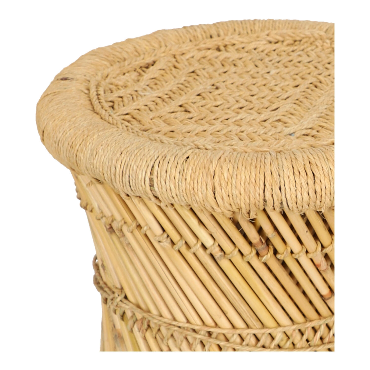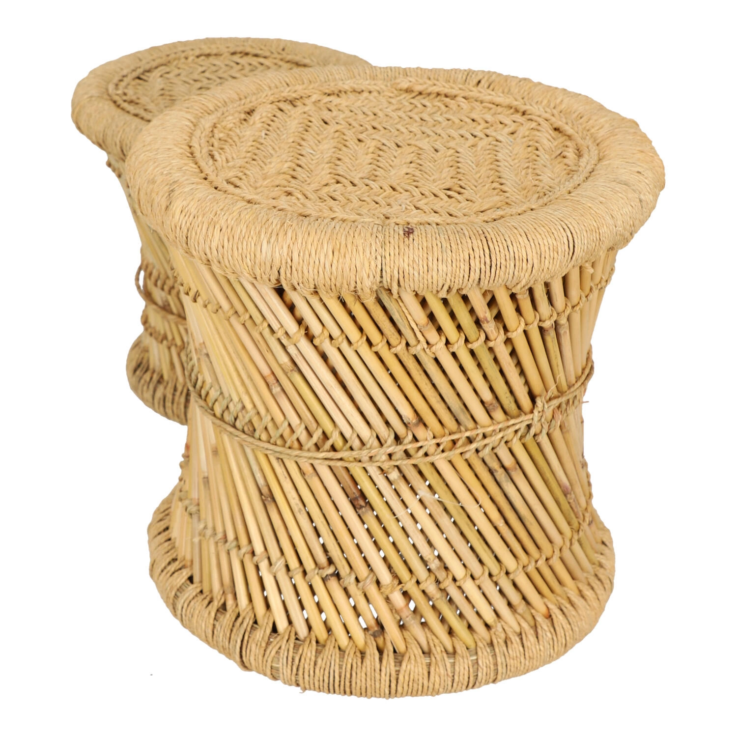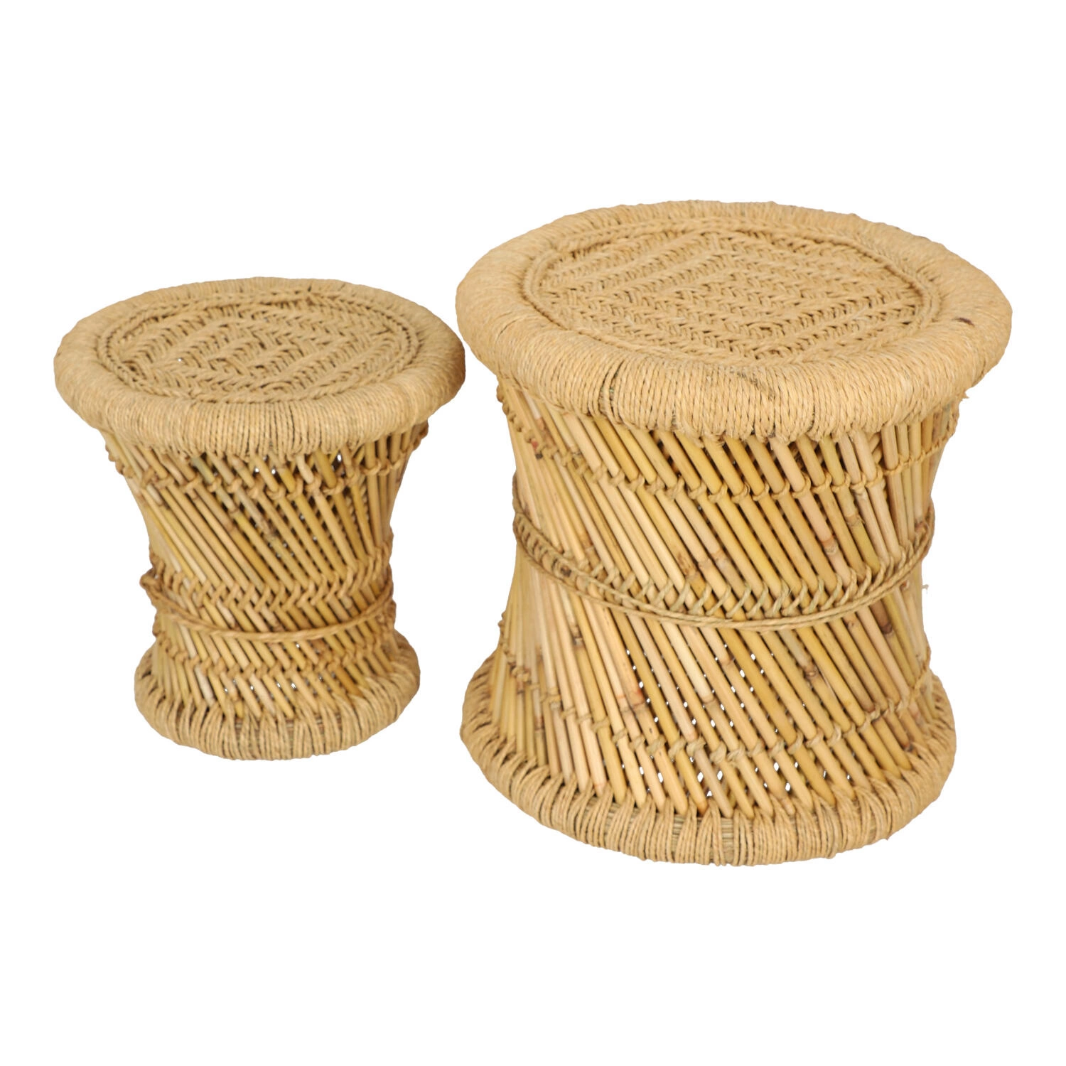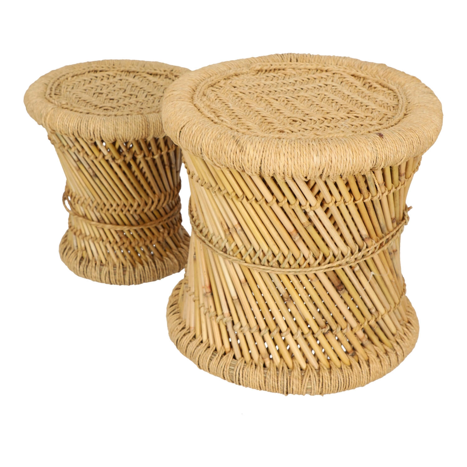 Sada 2 kulatých konferenčních stolků boho Corde z bambusu a konopí do obývacího pokoje Atmosphera – přírodní prvek v moderním interiéru