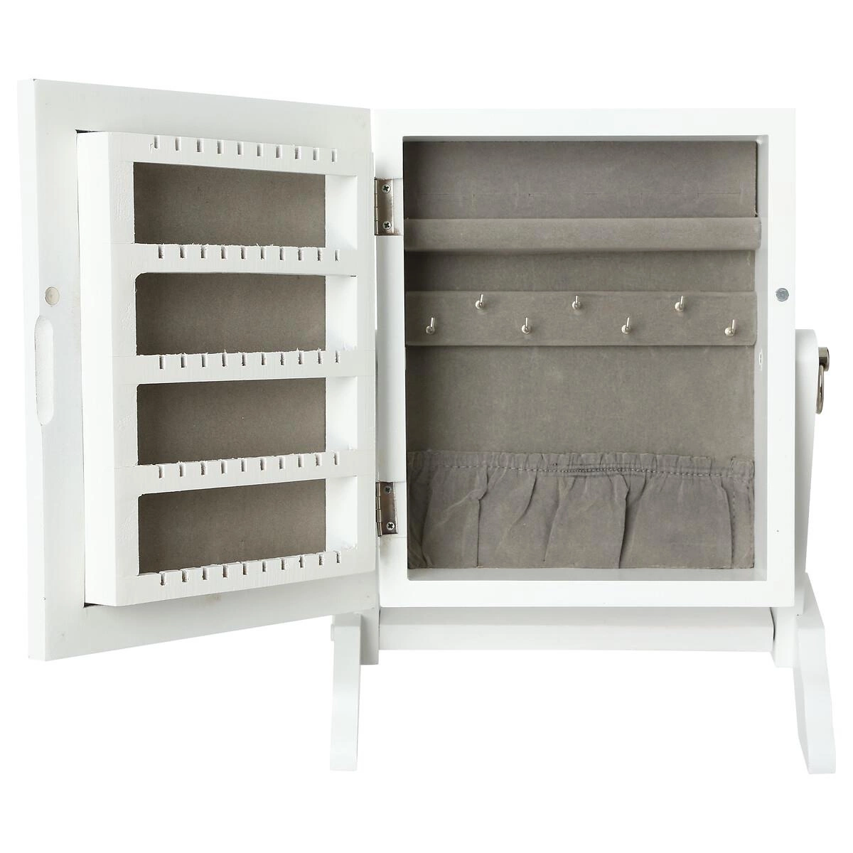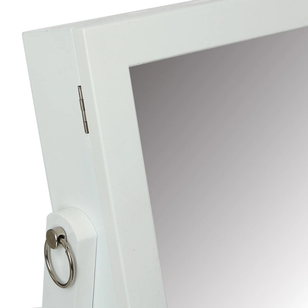 Stojací zrcadlo s organizérem na šperky Kristin od značky Atmosphera je praktickým a stylovým doplňkem na toaletní stolek nebo do ložnice, který spojuje moderní design s vysokou funkčností. Vyrobeno z odolné MDF desky v bílé barvě a skla, nabízí kompaktní rozměry – výška 28,3 cm, šířka 22,5 cm, hloubka 15 cm – díky čemuž se skvěle hodí i na malou komodu nebo pracovní desku. Nejde jen o stojací zrcadlo, ale také o promyšlený organizér, který vám pomůže udržet pořádek mezi oblíbenými šperky.