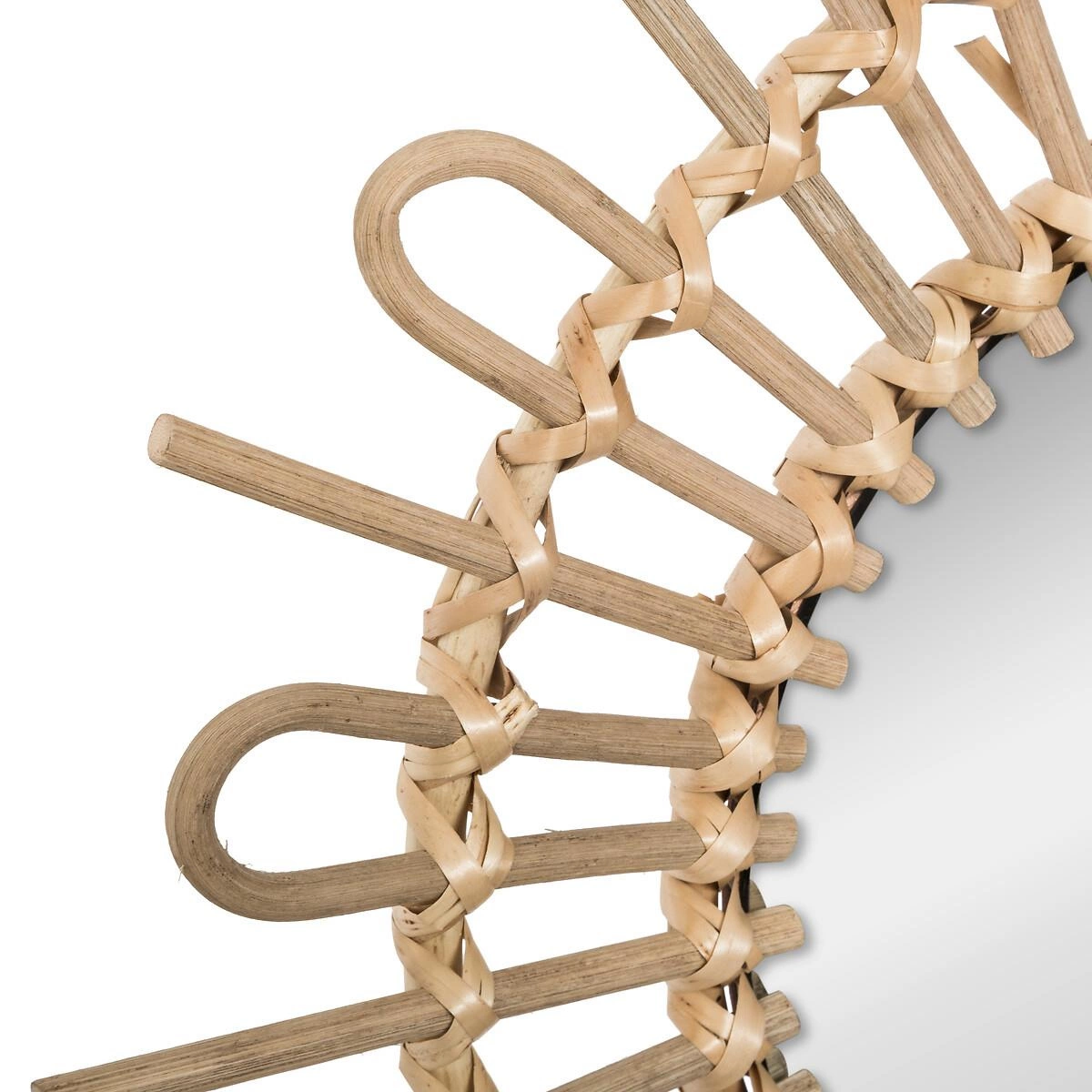 Pevný rám z ratanu a proutí zajišťuje dlouhou životnost a zároveň dodává zrcadlu vzdušný vzhled. Zrcadlová plocha o průměru 23 cm umožňuje pohodlné zhlédnutí před odchodem z domu i během každodenních rituálů. Konstrukce na pevném podkladu umožňuje snadnou a bezpečnou instalaci na stěnu. Je to skvělá volba pro ty, kteří hledají kulaté zrcadlo do obýváku nebo ložnice, které podtrhne osobitý styl prostoru.