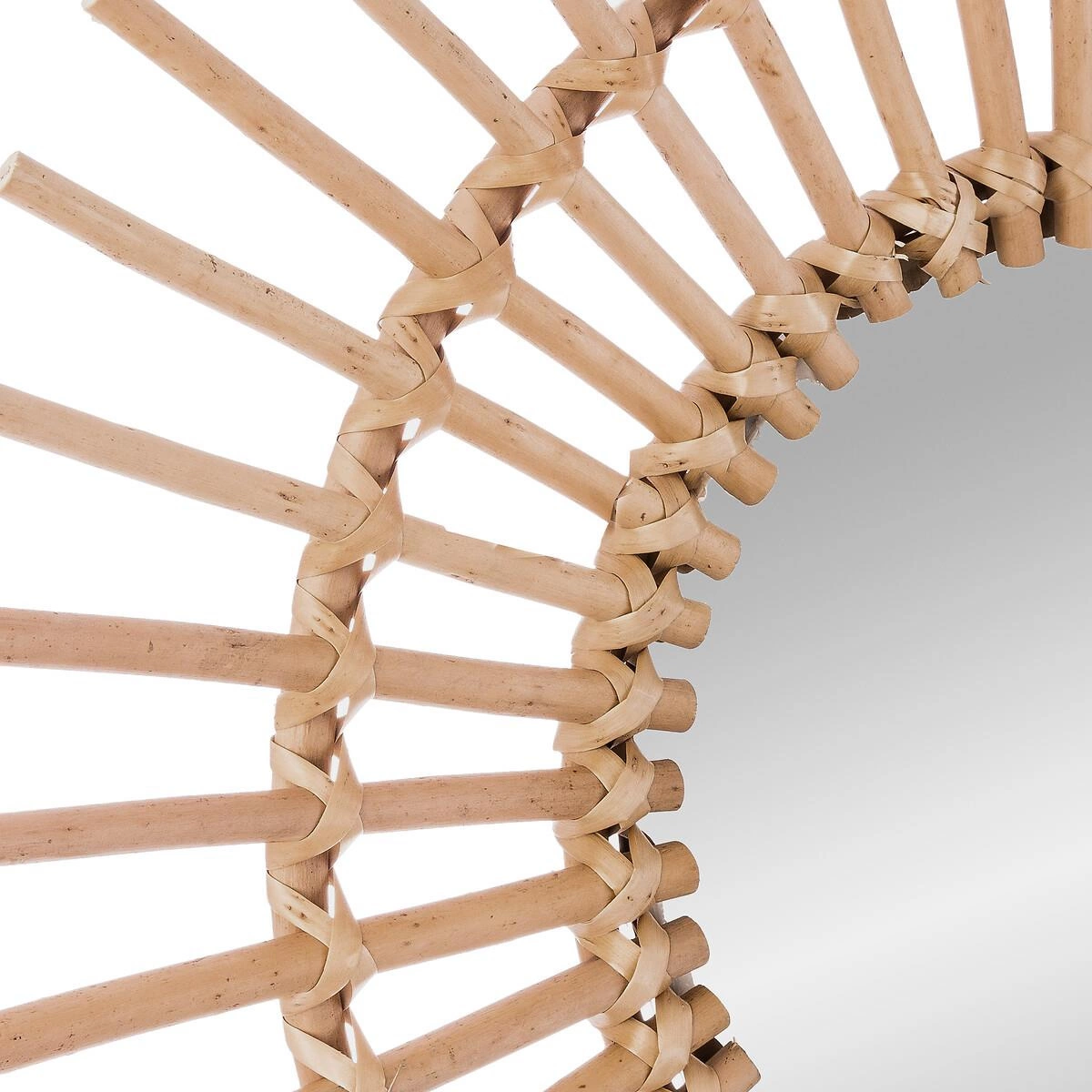 Kulaté zrcadlo v boho stylu je nejen krásným doplňkem, ale také praktickým prvkem interiéru. Průměr samotné plochy 23,5 cm umožňuje pohodlně upravit účes nebo make-up a díky lehké konstrukci (pouze 0,7 kg) ho snadno připevníte na stěnu. Ozdobný a pevný rám z vrbového dřeva podtrhuje přirozený vzhled místnosti a dodává jí originalitu.