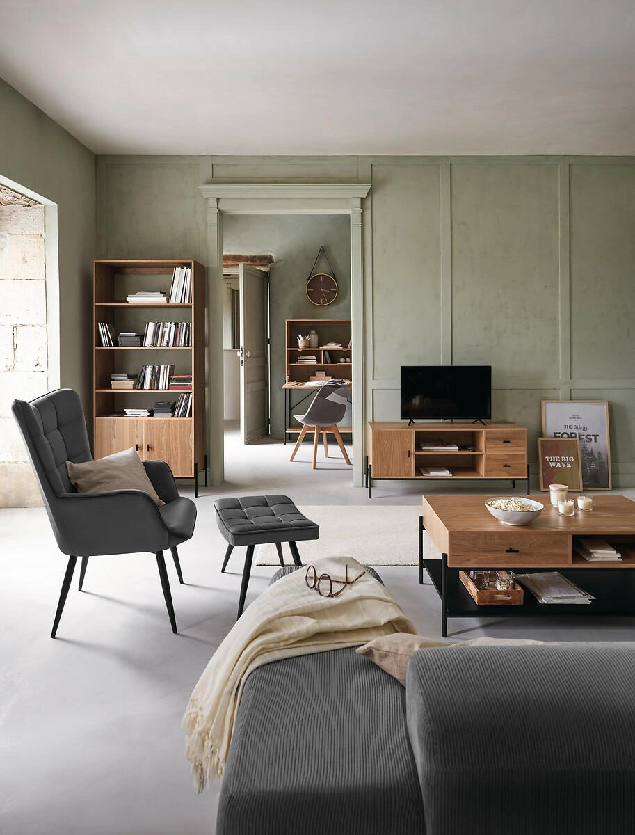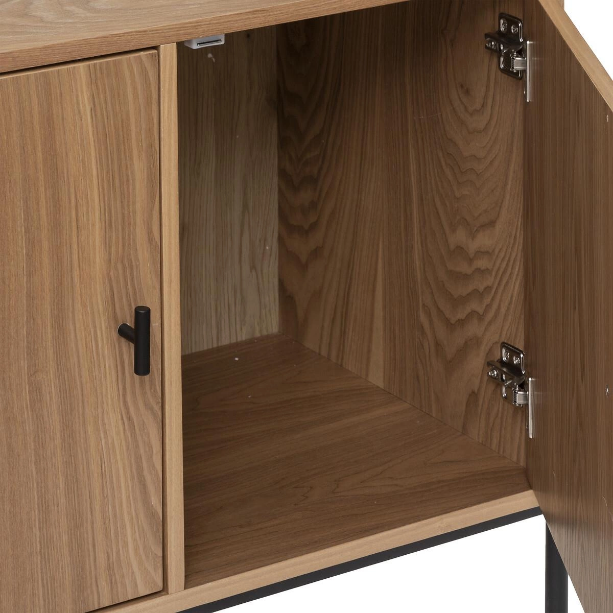 Atmosphera vsadila na nadčasovou kombinaci přírodní jasanové dýhy a černého kovu, což dává knihovně Simon jedinečně moderní, a přitom útulný charakter. Jednoduchý design a hladké čelní plochy dokonale zapadají do holandského stylu, zdůrazňují minimalistický a elegantní ráz interiéru. Kovové úchyty a štíhlé nohy celý vzhled podtrhují a dodávají lehkost i industriální nádech, který skvěle ladí s moderním zařízením obývacího pokoje nebo ložnice.