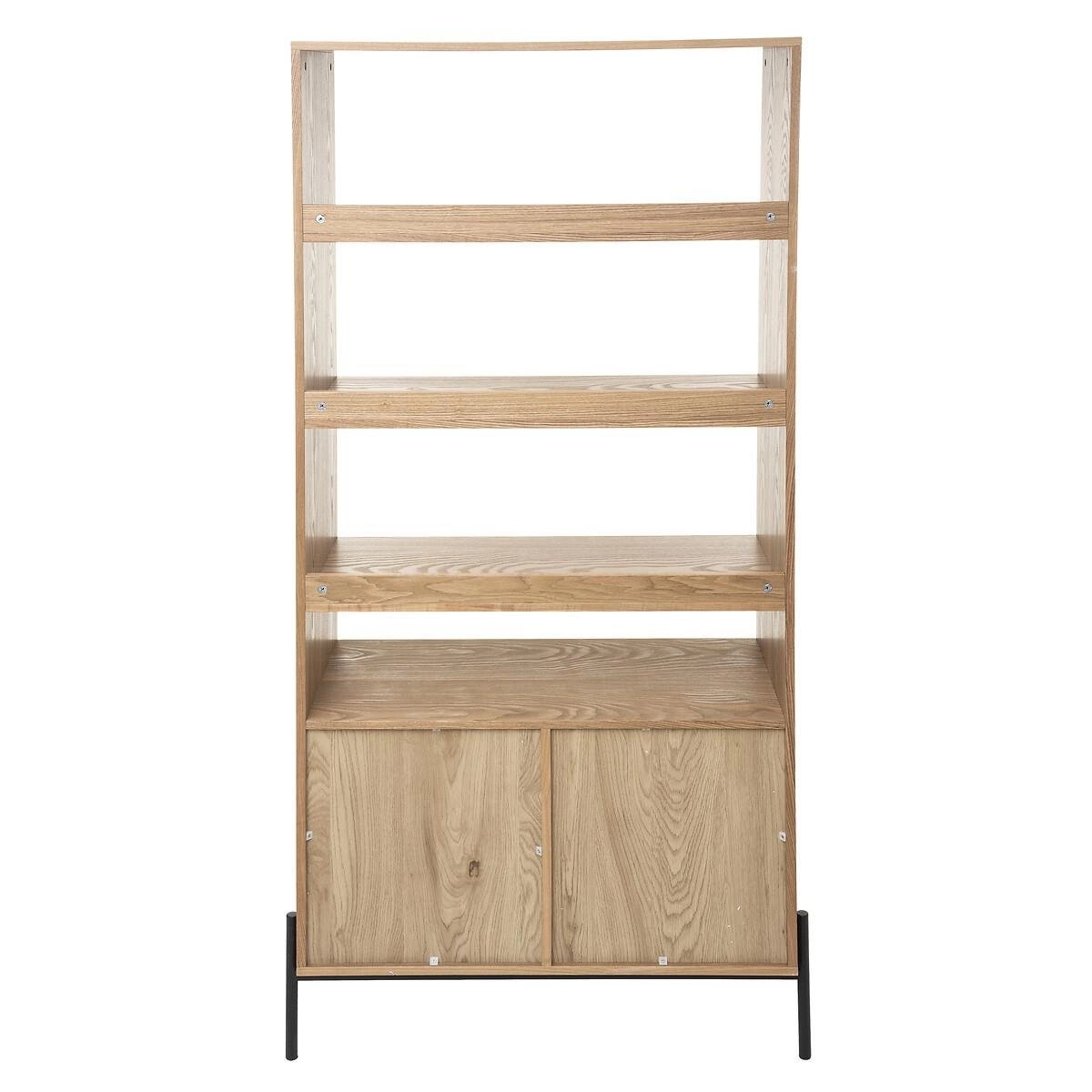 Simon moderní knihovna značky Atmosphera je řešení, které spojuje holandský styl s maximální funkčností. Nábytek o výšce 184 cm, šířce 80 cm a hloubce 40 cm je vyroben z jasanové dýhy a kovu, díky čemuž propojuje přirozenou krásu dřeva s pevností černé železné konstrukce. Čtyři prostorné police a dvě uzavíratelné skříňky zajišťují, že knihovna Simon perfektně poslouží v obývacím pokoji i ložnici jako úložný prostor na knihy, dekorace i oblíbené suvenýry.