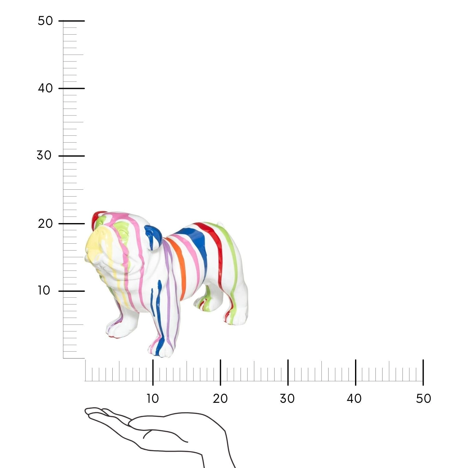 Dekorativní figurka anglického buldoka byla navržena pro každodenní použití. Plast, ze kterého je vyrobena, je odolný vůči poškození a snadno se čistí – stačí ji otřít suchým nebo lehce navlhčeným hadříkem, a bude vždy vypadat perfektně. Díky tomu ji můžete bez obav umístit i na místa, která jsou více vystavena nečistotám, například do kuchyně nebo předsíně.