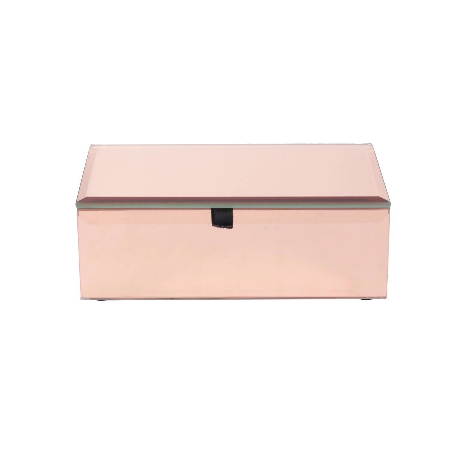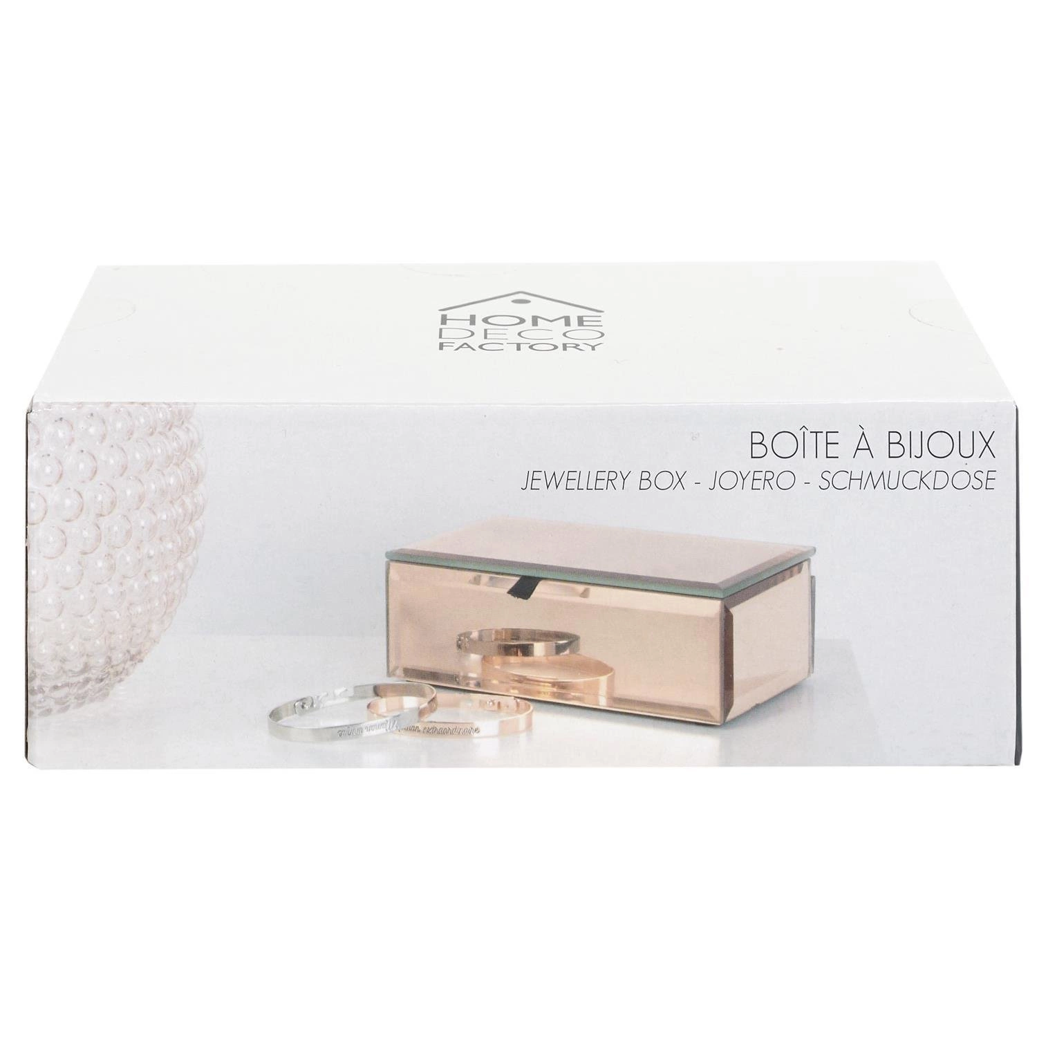 Organizer na šperky Golden Rose od značky Intesi je elegantní skleněný organizér s růžovými akcenty v glamour stylu, vybavený praktickými přihrádkami. Díky kompaktním rozměrům – 16 cm na šířku, 9,5 cm do hloubky a 5,5 cm na výšku – se skvěle hodí jak na toaletní stolek, tak i do zásuvky. Tento jemný a zároveň výrazný organizér na šperky vám umožní mít přehledně uspořádané prsteny, náušnice, náramky i náhrdelníky a zároveň se stane jedinečnou ozdobou vašeho interiéru.