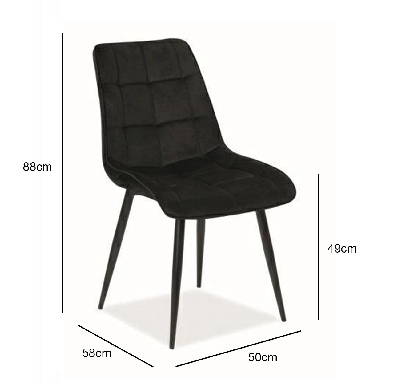 Kovová konstrukce s černým lakováním zaručuje vysokou stabilitu a odolnost vůči každodennímu používání – bez obav z poškrábání nebo deformací. Jídelní židle Plaid Velvet má rozměry 88 cm na výšku, 50 cm na šířku a 58 cm do hloubky, přičemž sedák ve výšce 49 cm zajišťuje pohodlné sezení i během dlouhých rodinných setkání. Maximální nosnost 120 kg potvrzuje pevnost konstrukce, která je vhodná jak do domácností, tak do komerčních prostor.