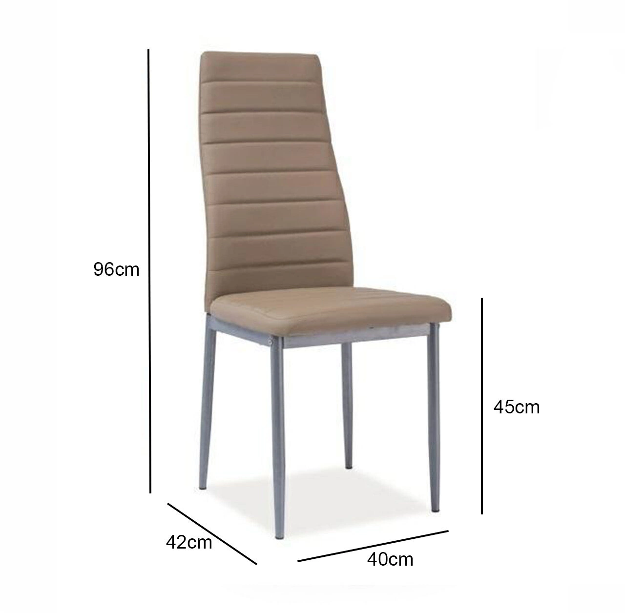 Čalouněná židle Luisa od značky Intesi je skvělou volbou pro ty, kteří hledají stylovou a pohodlnou židli do jídelny nebo obývacího pokoje. Tento model je vyroben z tmavě béžové ekokůže, která nejen působí elegantně, ale také umožňuje snadno udržet sedák v čistotě. Stabilitu nábytku zajišťují lehké hliníkové nohy se stříbrnou povrchovou úpravou, zatímco vysoké opěradlo a měkká pěnová výplň garantují pohodlí i při delším sezení.