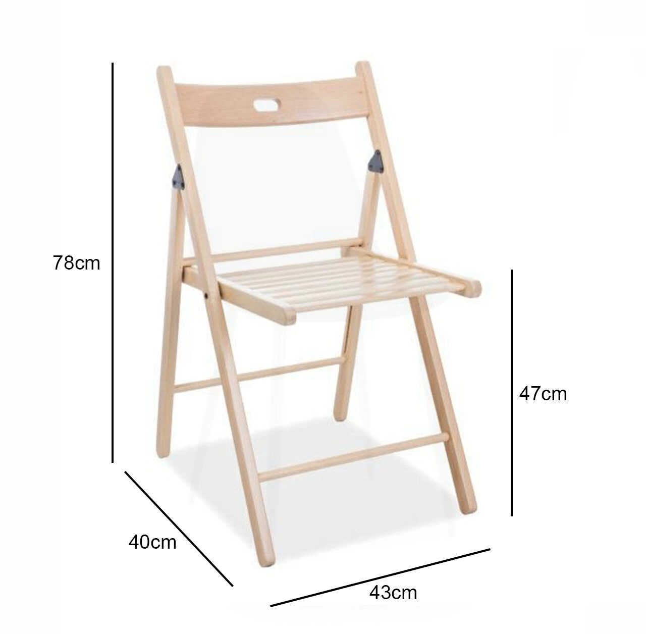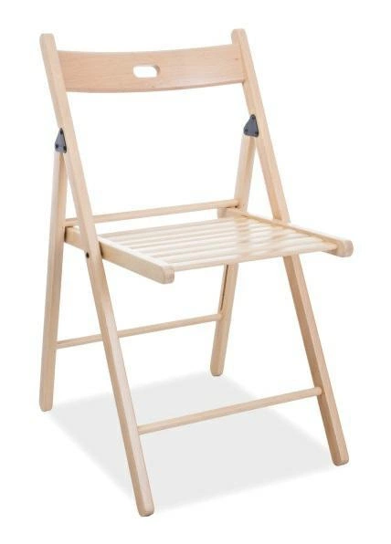Dřevěná židle Simple je skládací kus nábytku v přírodní bukové barvě. Skládací nábytek se bude dobře hodit na konferencích, banketech nebo na terase. Dřevěná skládací židle se snadno skladuje a zabírá velmi málo místa. Opěradlo tvoří mírně prohnutá deska s otvorem, který slouží jako madlo. Sedák židle je vyroben z rovnoběžných prken. Maximální nosnost je 110 kg. Židle nevyžaduje žádnou montáž a je okamžitě připravena k použití.