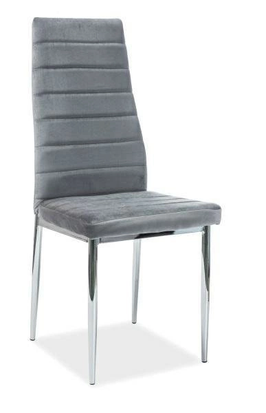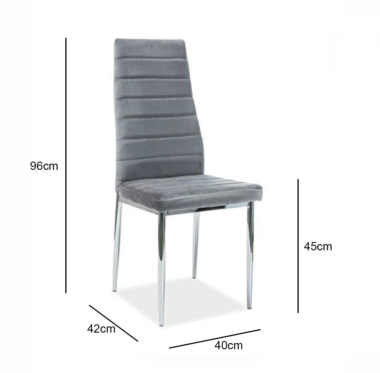 Čalouněná židle z veluru Luisa od značky Intesi je spojením moderní elegance a praktického pohodlí při každodenním používání. Štíhlý tvar, šedý sedák z příjemné velurové látky a pevné, chromované nohy dělají z modelu Luisa ideální židli do jídelny, kuchyně nebo obývacího pokoje. Výška židle je 96 cm, šířka 40 cm a hloubka 42 cm – díky těmto rozměrům snadno zapadne i do menších interiérů.